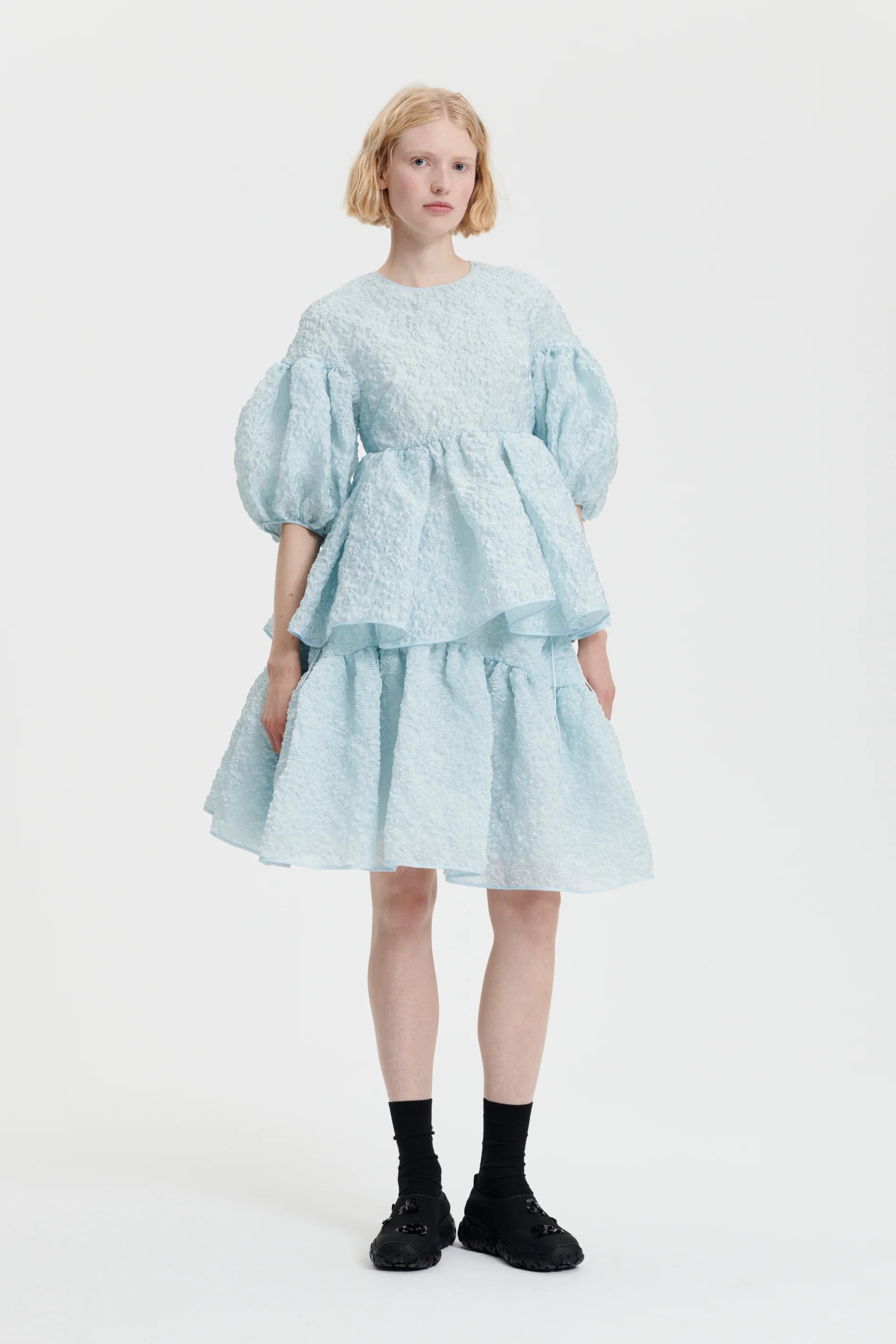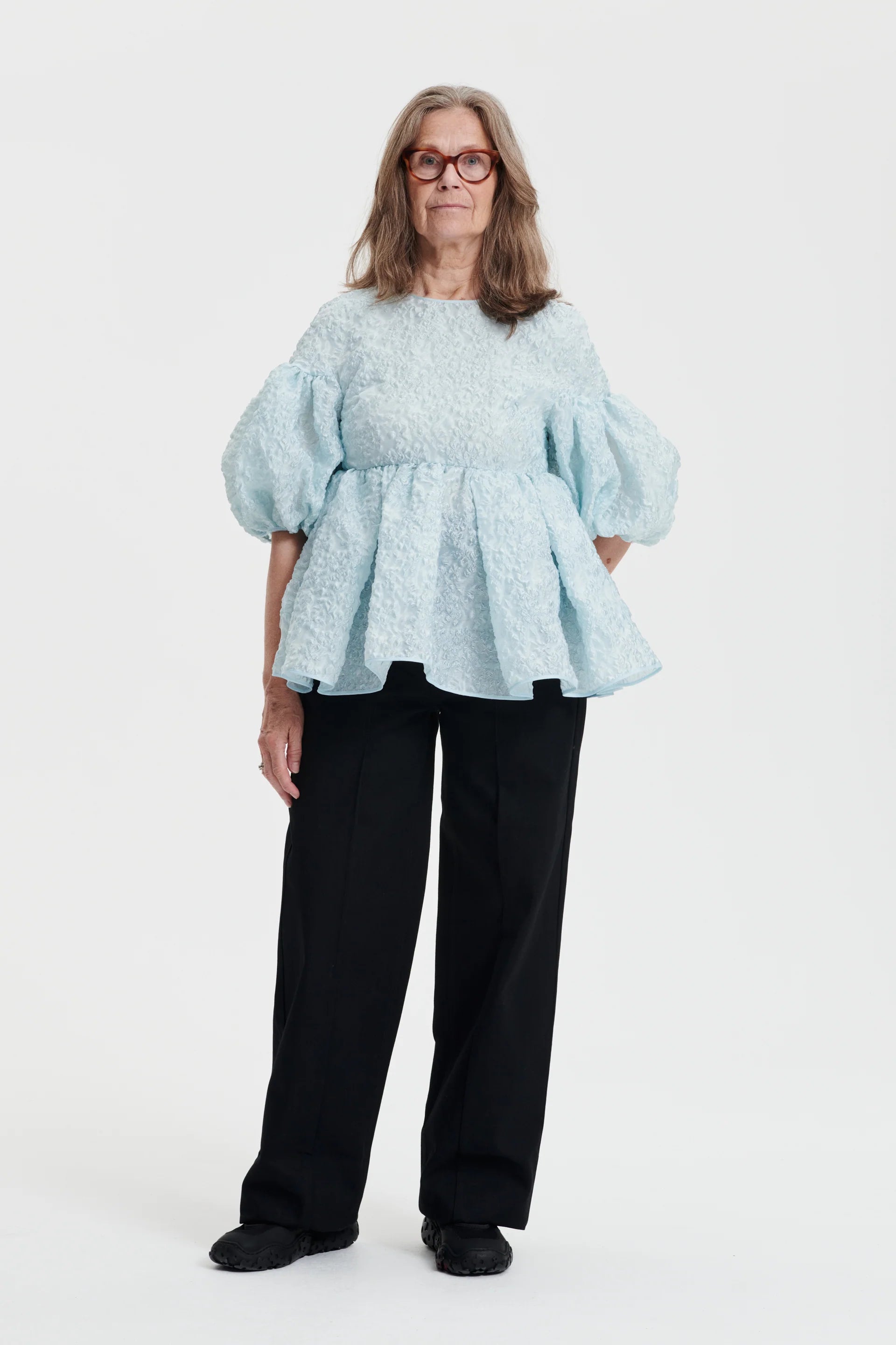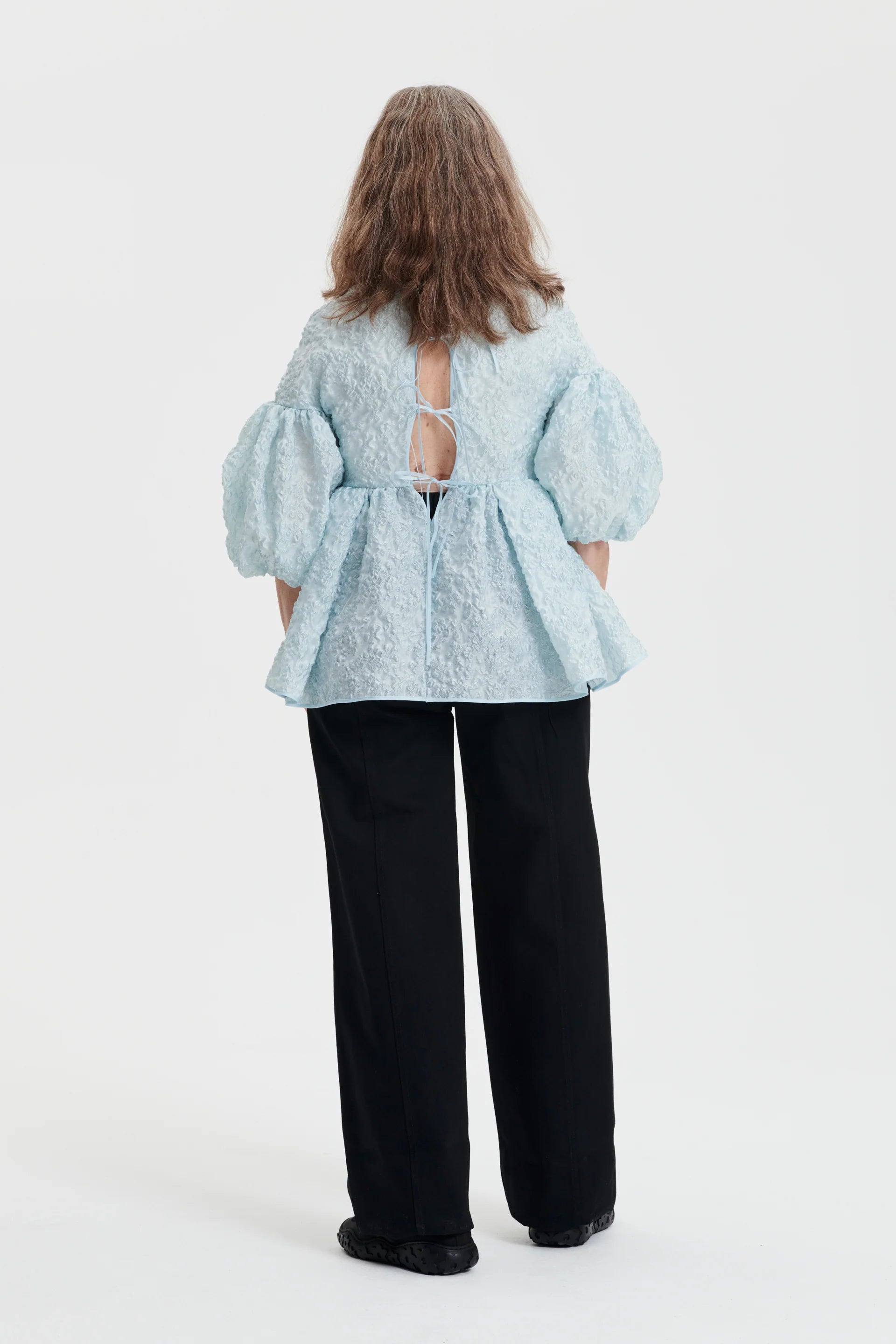 Capturing a signature silhouette. the Jerry top is an emblem of Cecilie Bahnsenís vision of feminity. Crafted from an airy yet luxurious grasmere matelassÈ. detailed with voluminous sleeves on a dropped soulver and a peplum offset. Pulled together in the back by a row of ribbons.