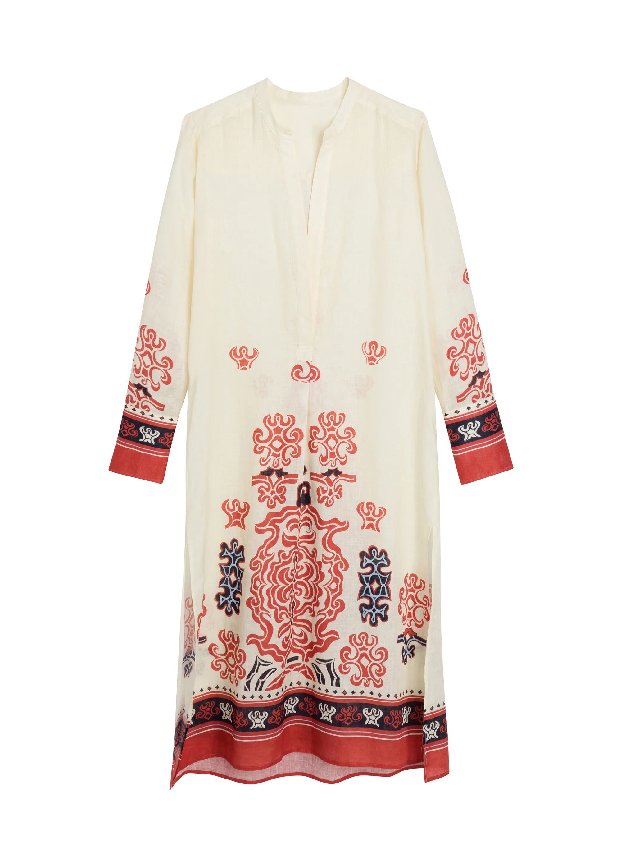 The Kacey II Dress is crafted in our Pellicano print lightweight linen in a cream and spice color palette. This midi silhouette features tunic detailing and long. knuckle-grazing sleeves lend an effortless finish. This style runs true to size. Shop Swim.
