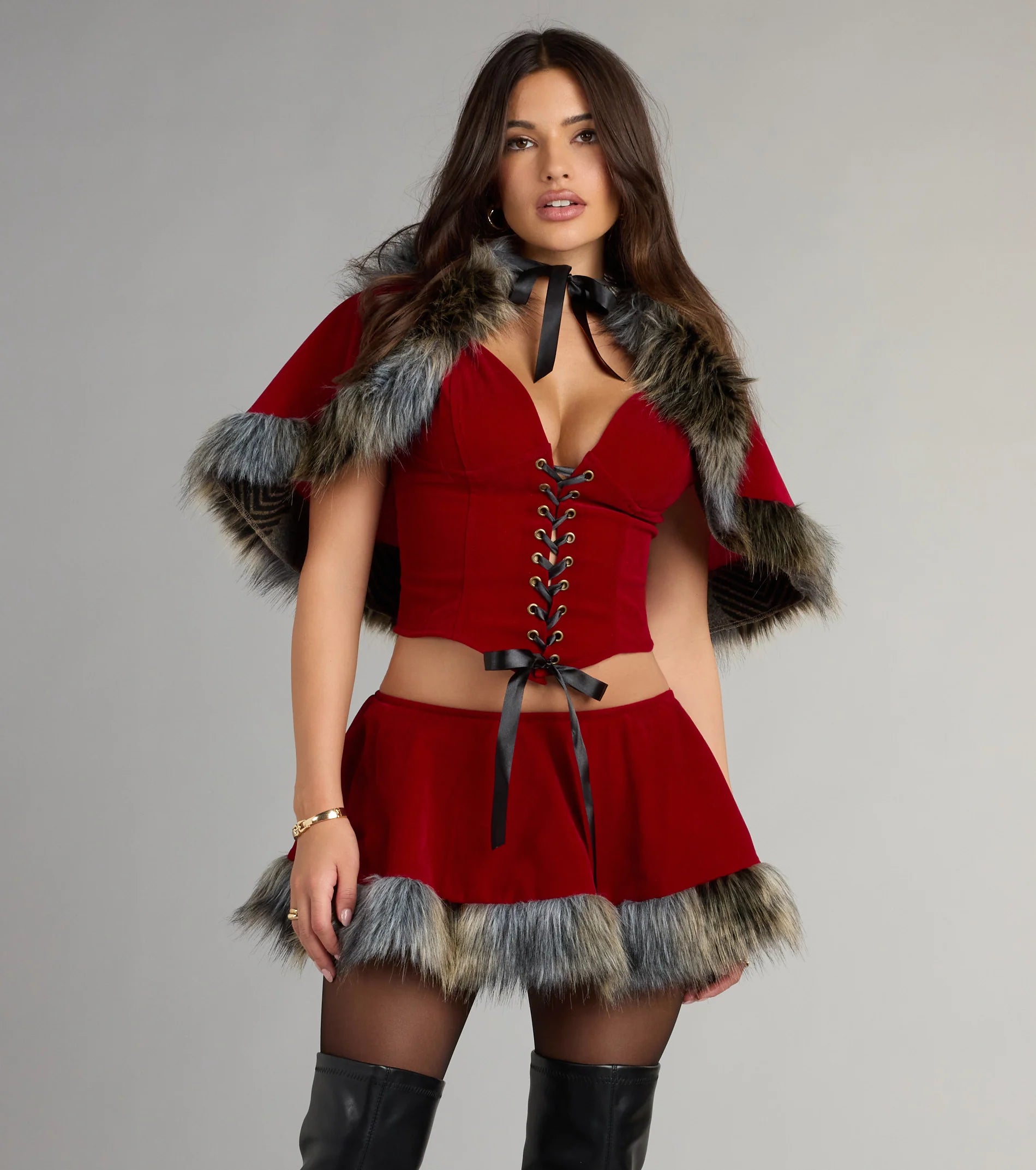 Once upon a glow-up—this Little Red mini skort is giving storybook baddie. Perfect for Halloween costume parties when you want your fairytale with a sultry twist!