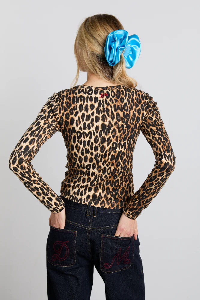 The perfect piece for statement layering. our Lua pointelle long-sleeved top in signature leopard print is designed to elevate every day dressing.