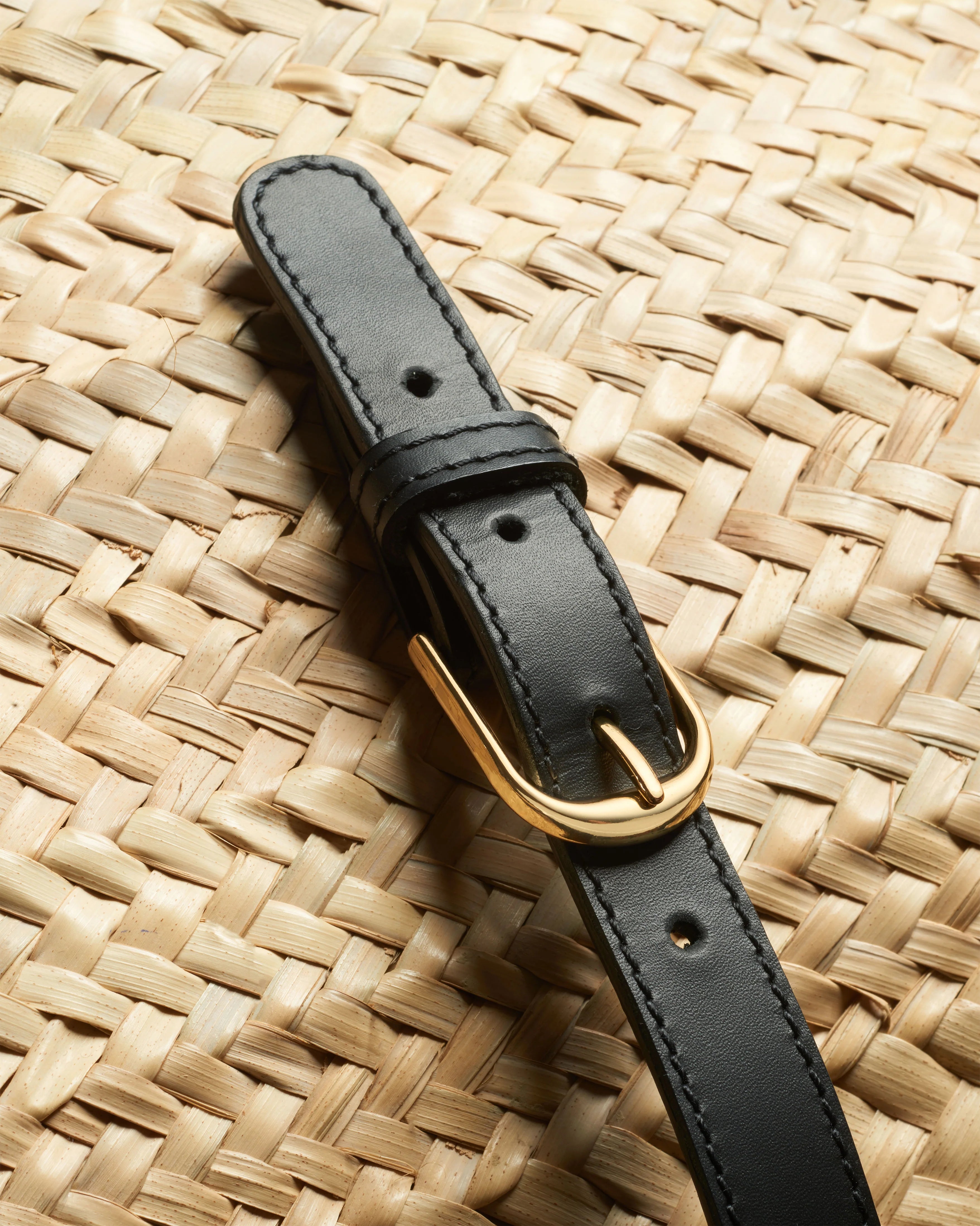 The perfect beach tote. lightweight and roomy enough for all the seaside necessities. Handwoven from palm leaves in Morocco and finished with Italian leather trim. Sturdy leather base. Interior pouch to store small items. Custom gold hardware at shoulder straps and Nili's signature Jane Belt buckle closure.