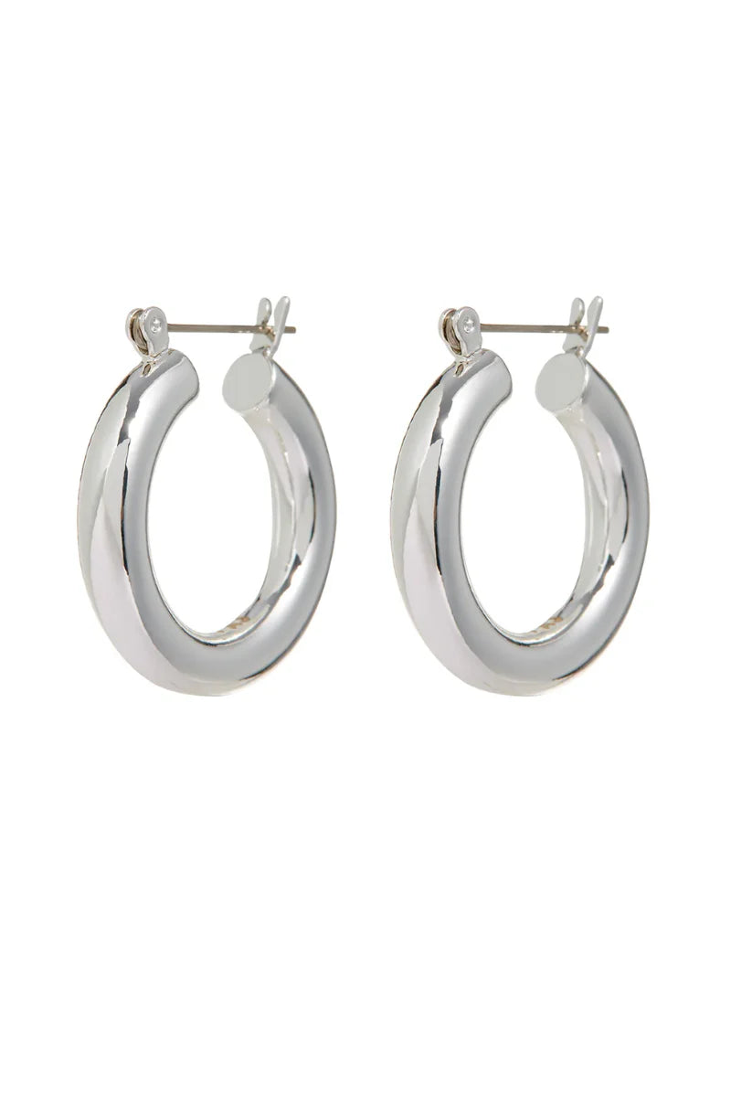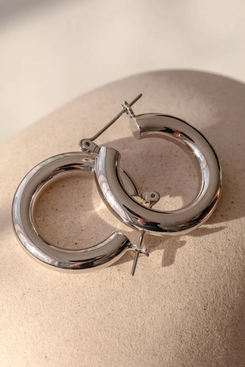 The Baby Amalfi Tube Hoops are a classic pair of medium-sized hollow and lightweight metal earrings that are perfect for everyday wear!