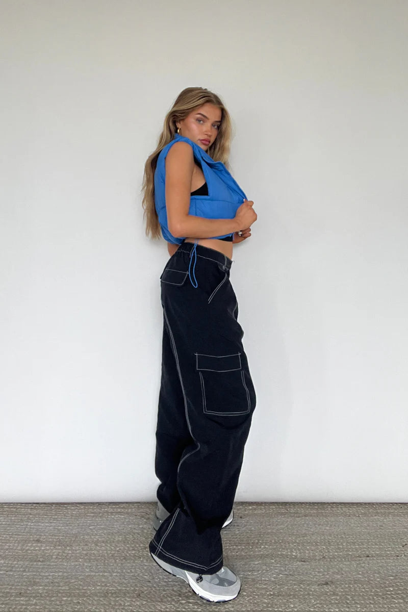 Parachute pants are a must have this season! The Lydia Contrast Seam Parachute Pants feature adjustable drawstrings at the ankles, a high rise fit, and contrast stitching. Pair with the for the ultimate streetwear look.