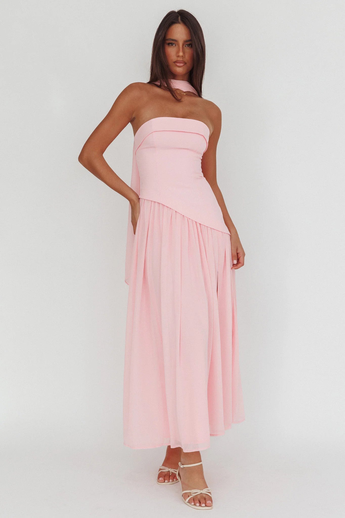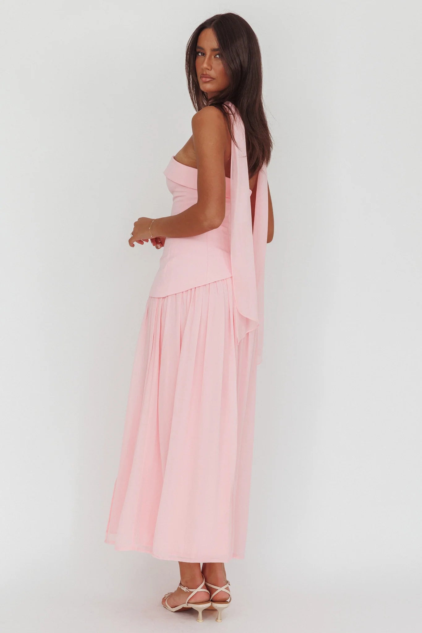 Steal the spotlight in our gorgeous Mariabella dress. We are in love with its contrasting bodice and asymmetric waistline. Wear it to a birthday soiree or special event teamed with nude, strappy heels and a clutch for an unforgettable look.