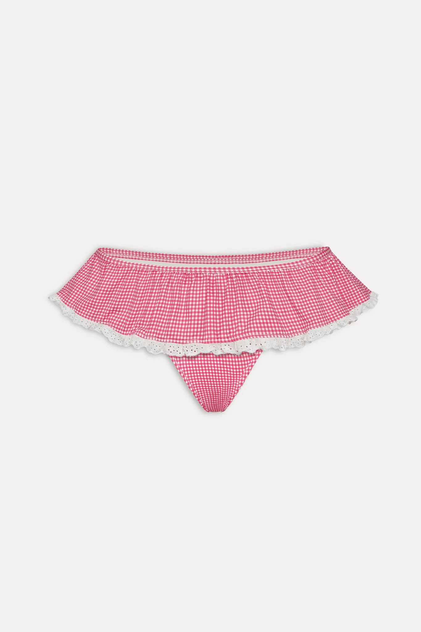 Designed with our best-selling Ladybug Gingham pattern. this low rise swim skirt is crafted to flatter every body type. Mercer features a built-in thong liner and a flirty top layer swim skirt for feminine coverage.