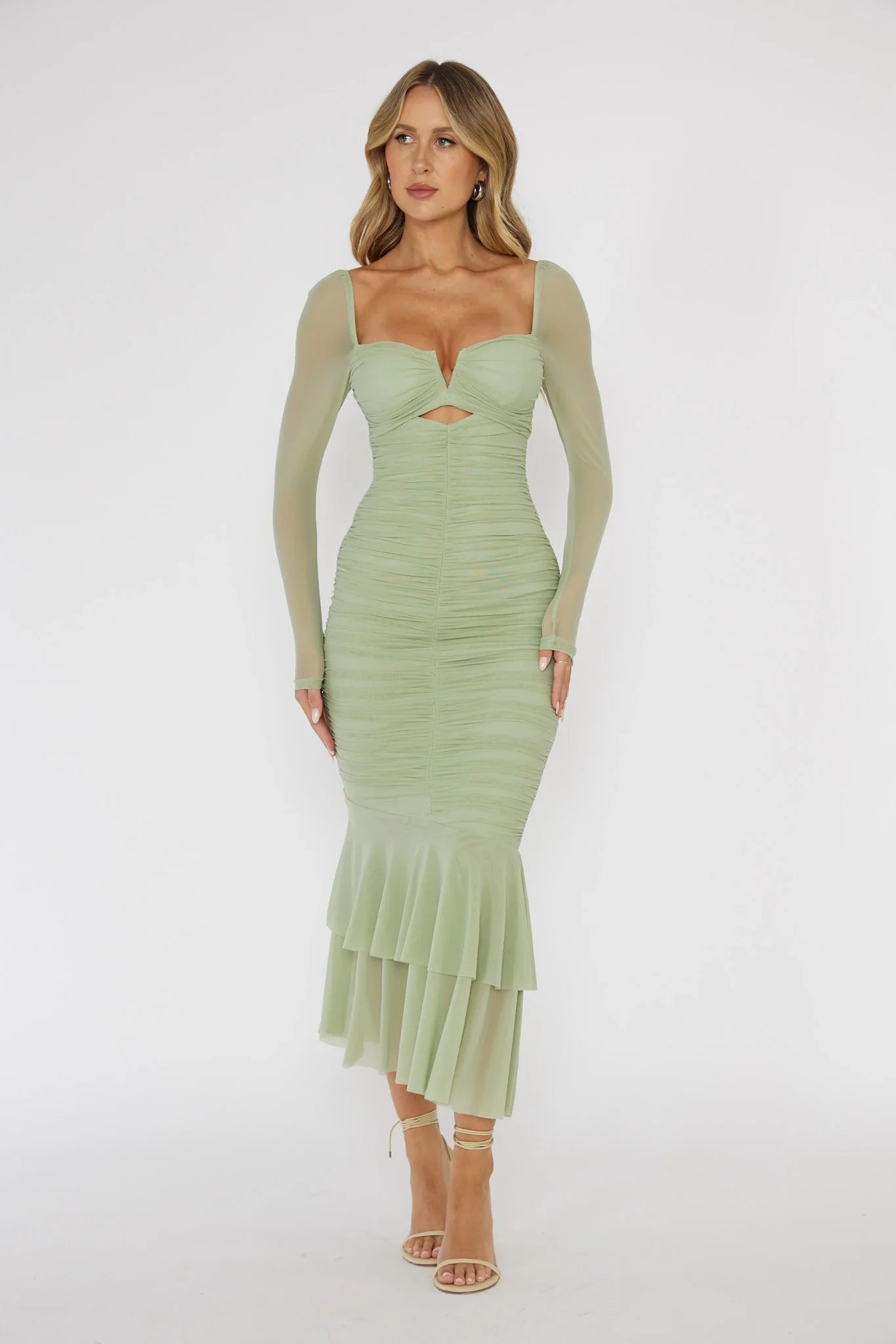 Make an entrance in our stunning Nadia midi dress. Featuring a fishtail style and ruching throughout, we're in love! Perfect for a wedding or birthday dinner! Team it with a clutch and nude heels for a look that will turn heads.