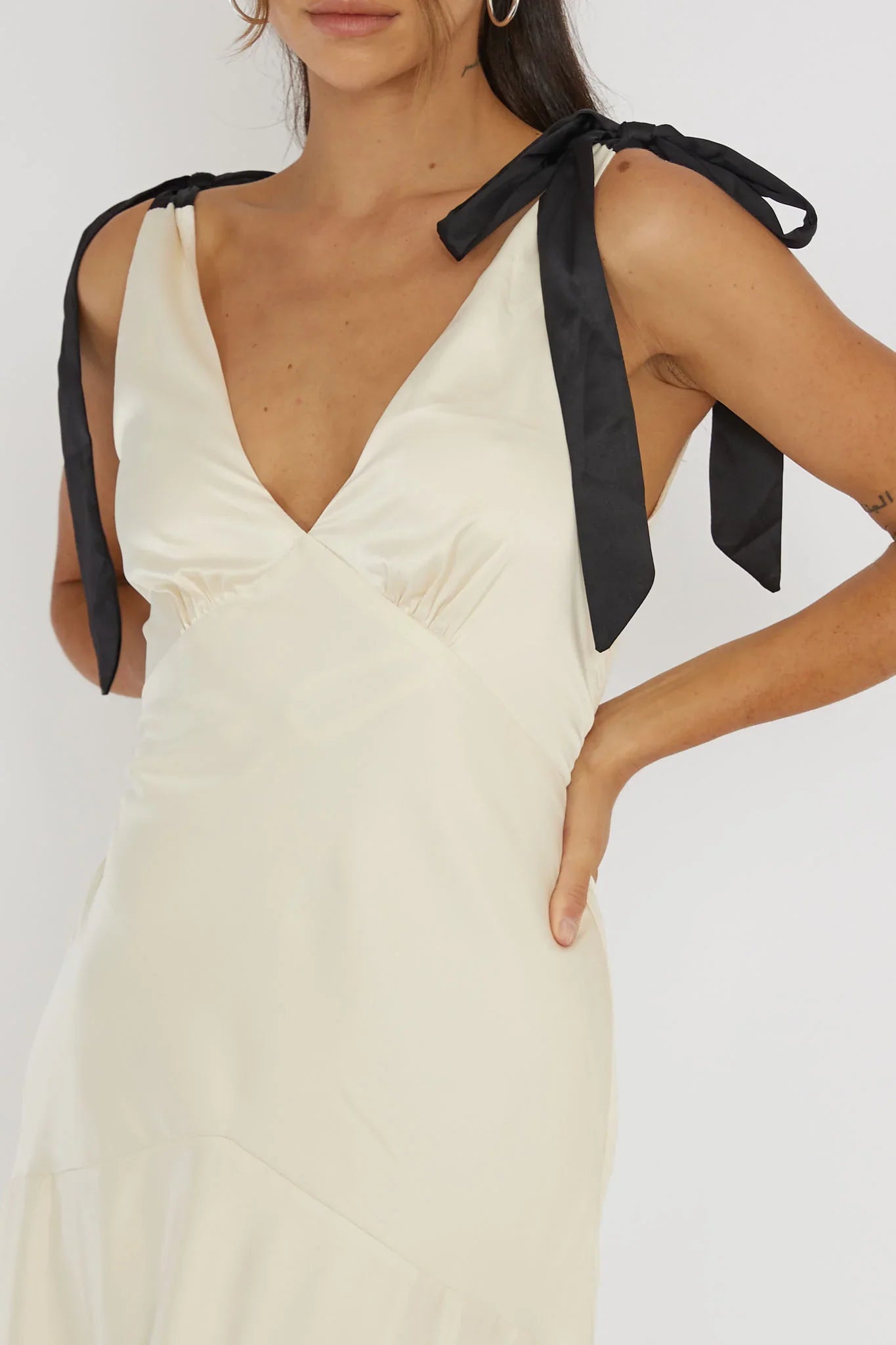 You know the bow trend isn't going anywhere and we are obsesseddd with our New York Minute maxi dress! Featuring contrasting bows on the shoulders and a flounce hem, it's perfect for a special occasion or bridal events. Team it with nude heels and a clutch for an It Girl look.