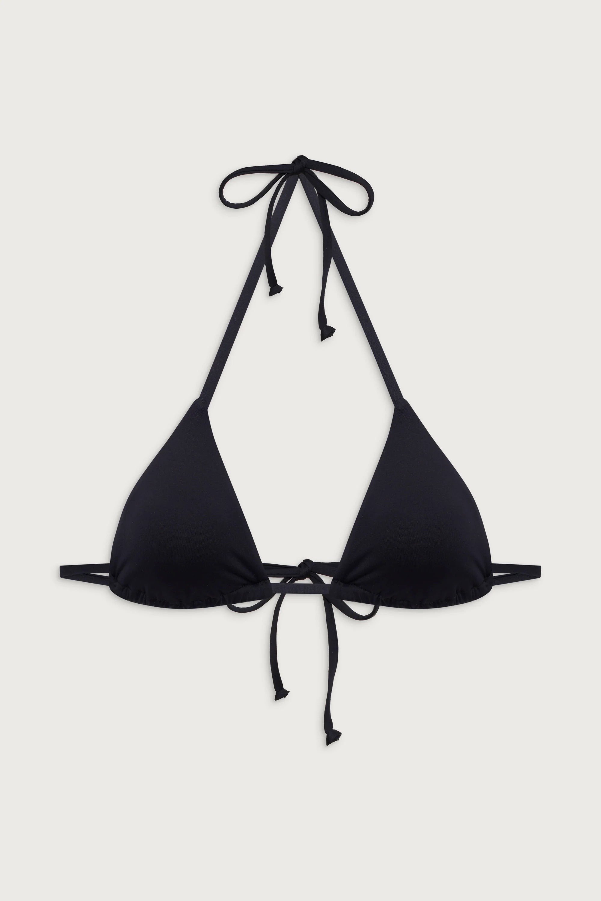 The ultimate bikini top in our signature SoftSwim fabric. Nick features a skimpy triangle shape and adjustable string straps that tie around the neck and back to give you a custom fit. Pair the Nick bikini top in Black with the matching Tia bottom as the perfect tanning set.