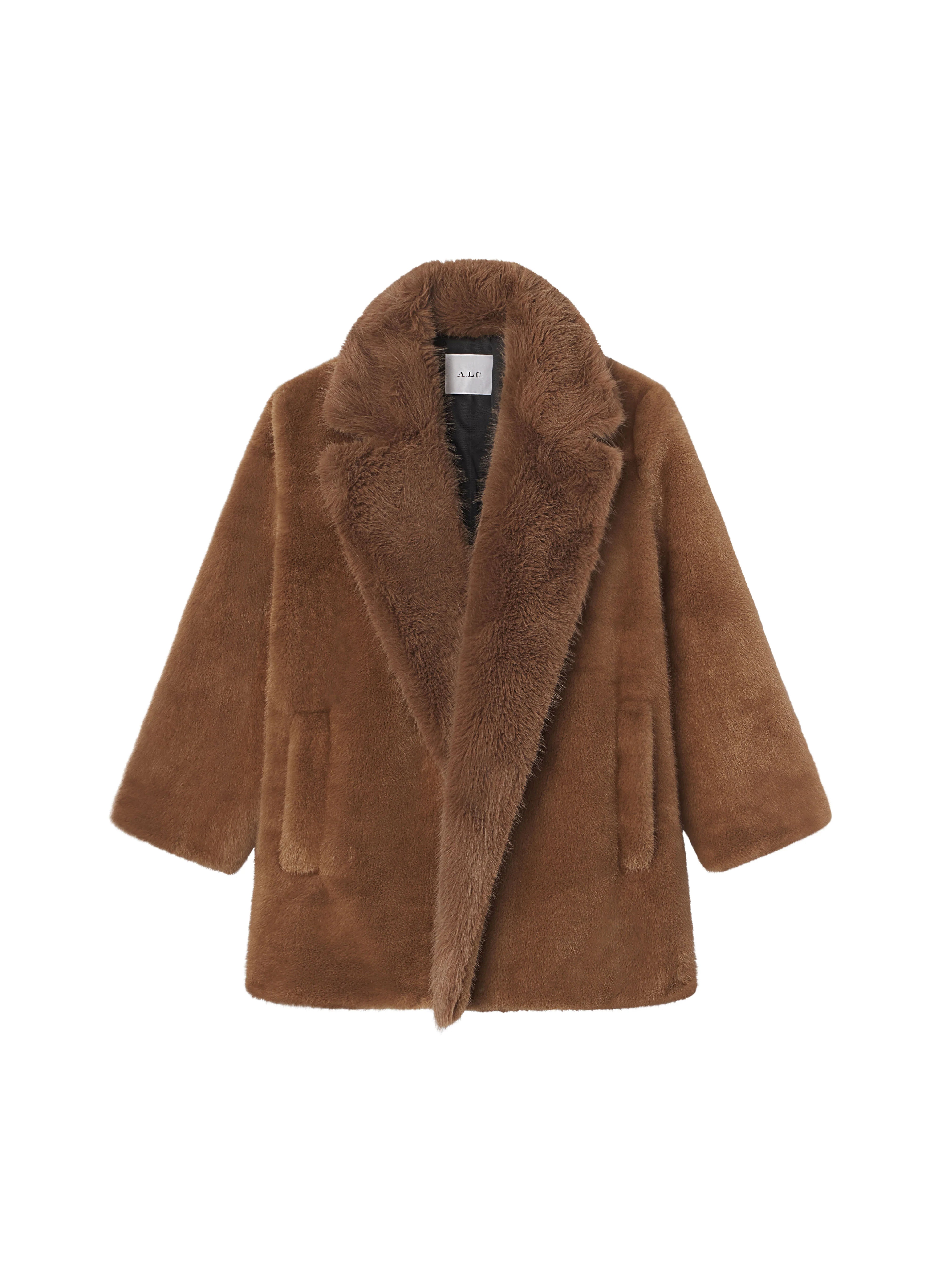 The Nina Coat is crafted from ultra-soft faux shearling in a rich. warm caramel hue. This oversized design features a plush collar. cozy side pockets. and a relaxed fit—perfect for cold-weather layering. Shop Jackets.