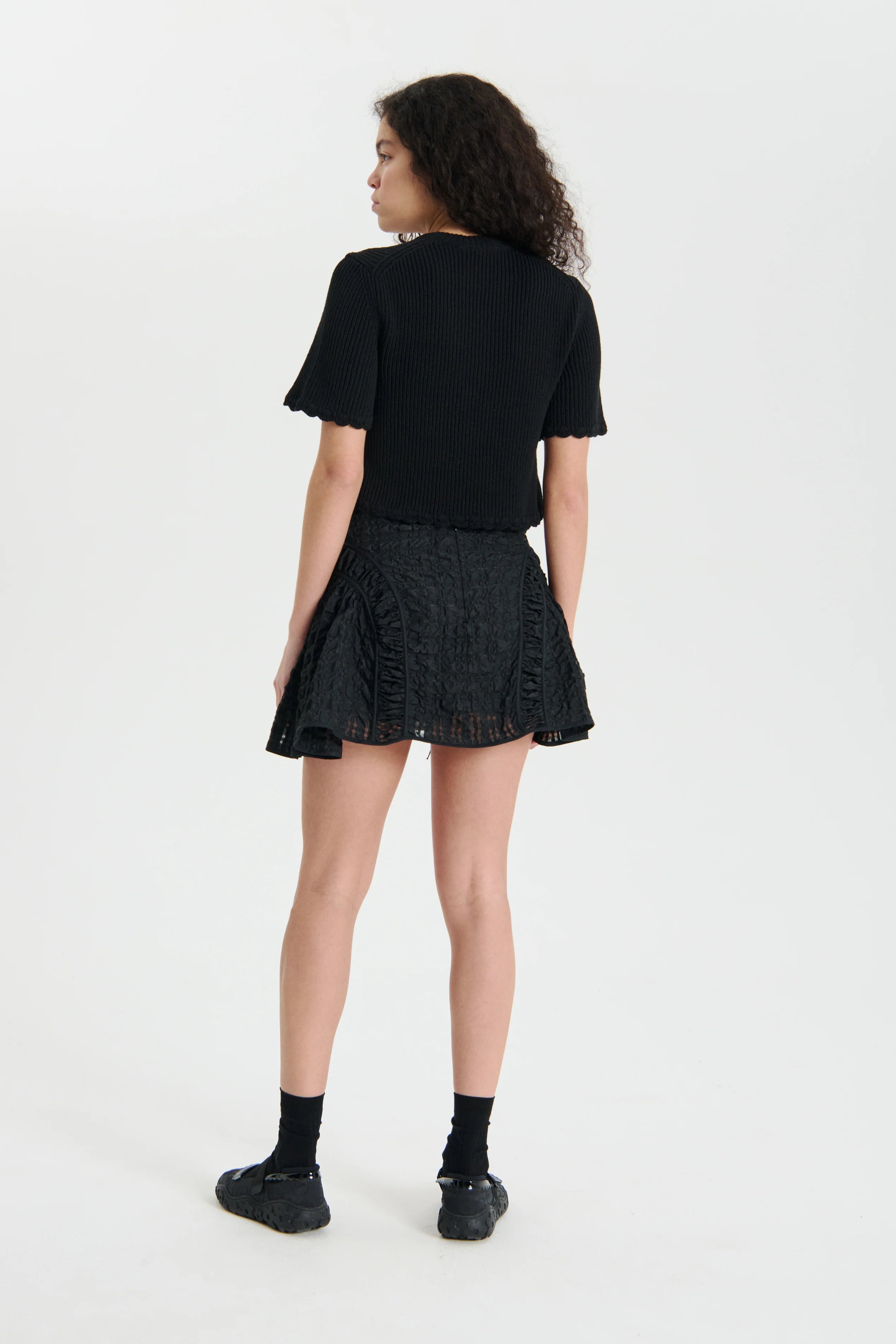 Airy and ethereal. the Oda skirt. Bringing lightness into Cecilie Bahnsenís pre-fall offering with a bespoke check seersucker fabrication. Tactfully placed hip inserts add cloud-like volume.