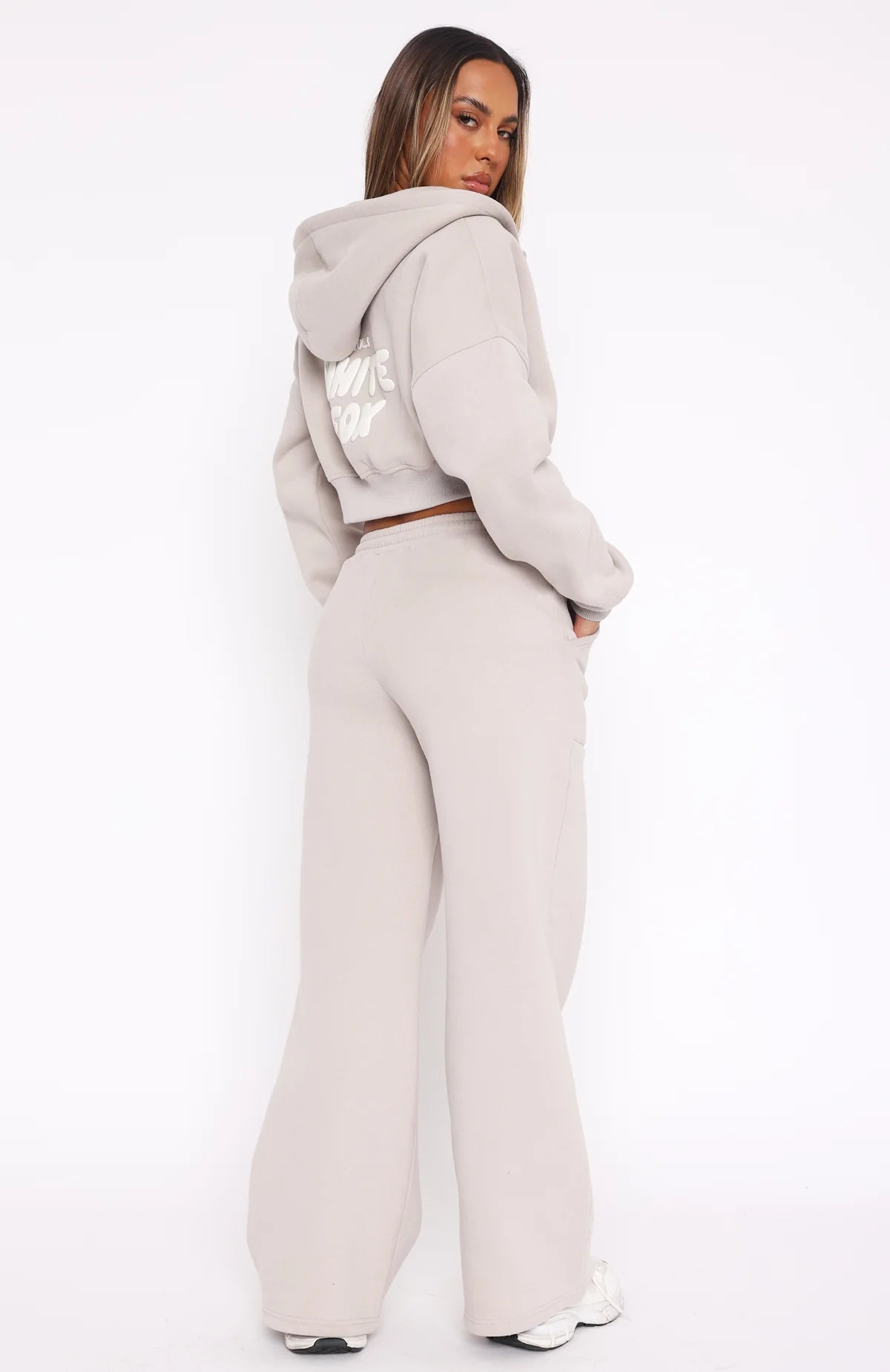 Comfort mode: activated. The Offstage Wide Leg Sweatpants Moon features a high elasticated drawstring waistband, elasticated ankles, side pockets, soft fleece fabric for extra comfort, wide leg design and puff print logo on side of leg. Team with the matching Offstage Zip Hoodie for a look we are obsessed with!