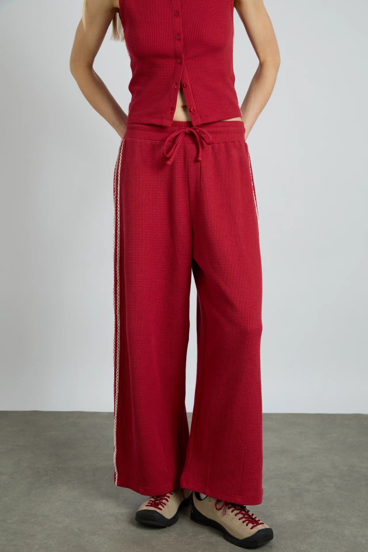 Cosy evening at home? Sunday morning markets? Styled with a nice top for brunch? Our piper waffle joggers have got your back in any situation. Pair these with the Betsie waffle tank for a more impactful look.