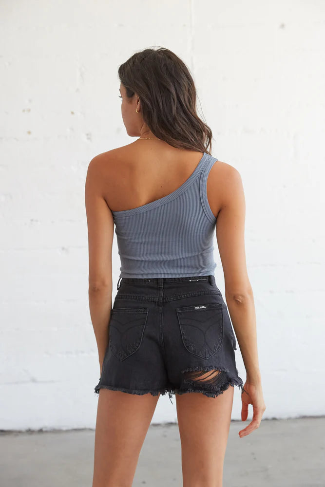Your next go-to basic is here! Our Rachel One Shoulder Ribbed Tank includes an asymmetrical neckline and the classic ribbed design for an easy fit. Available in vanilla, lilac, black, white, bluestone, and cloud pink. Pair with our to complete this laid back look!