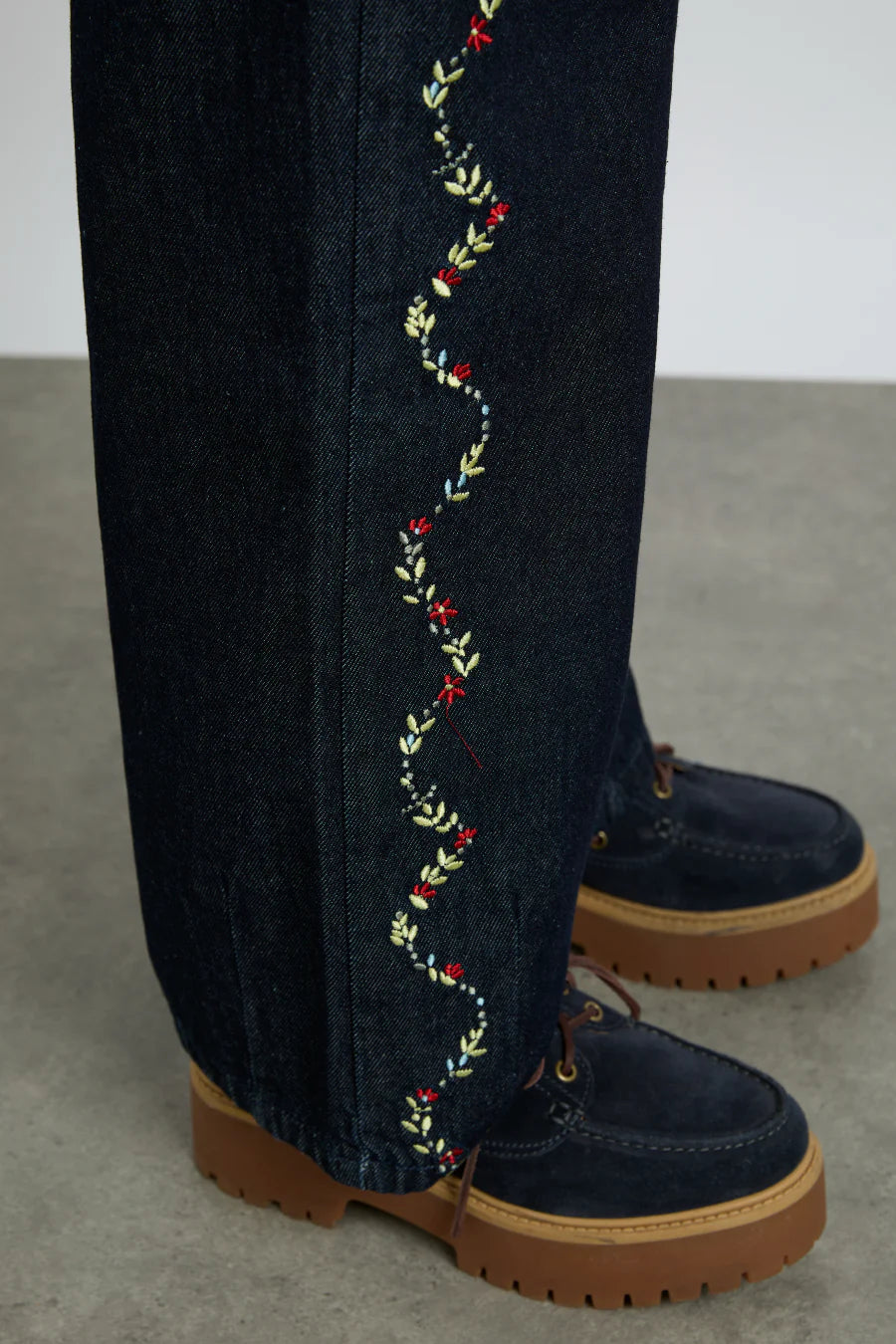 A fresh take on our classic Rafe. these indigo jeans feature intricate embroidery and they're made from 100% cotton.