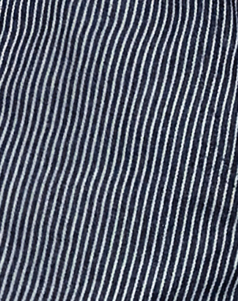 oversized . The feature a , floor length fit with a clean hem and front and back pockets. Finished with a branded back tab, button and rivets in a pinstripe indigo denim. Complete the look with