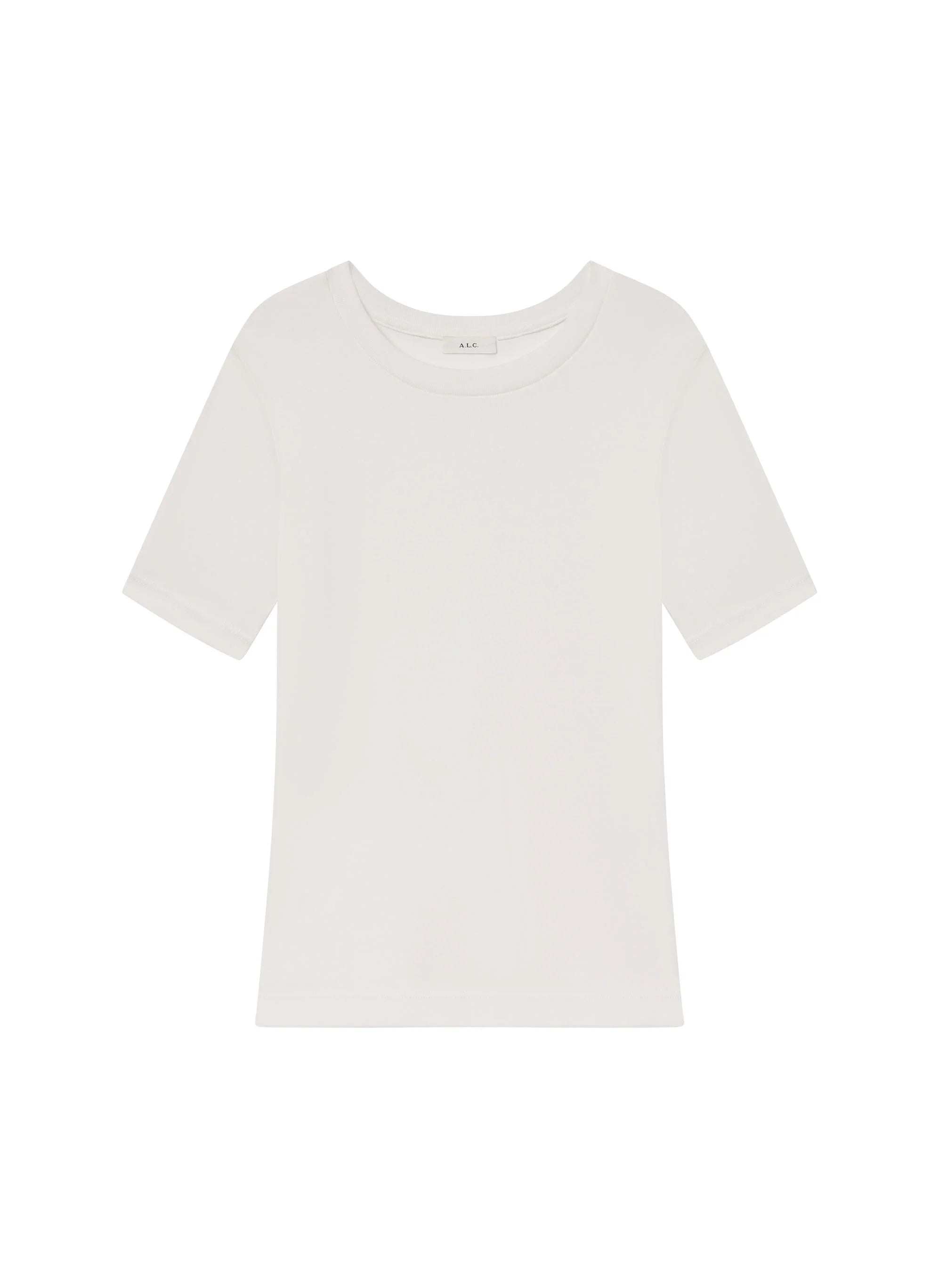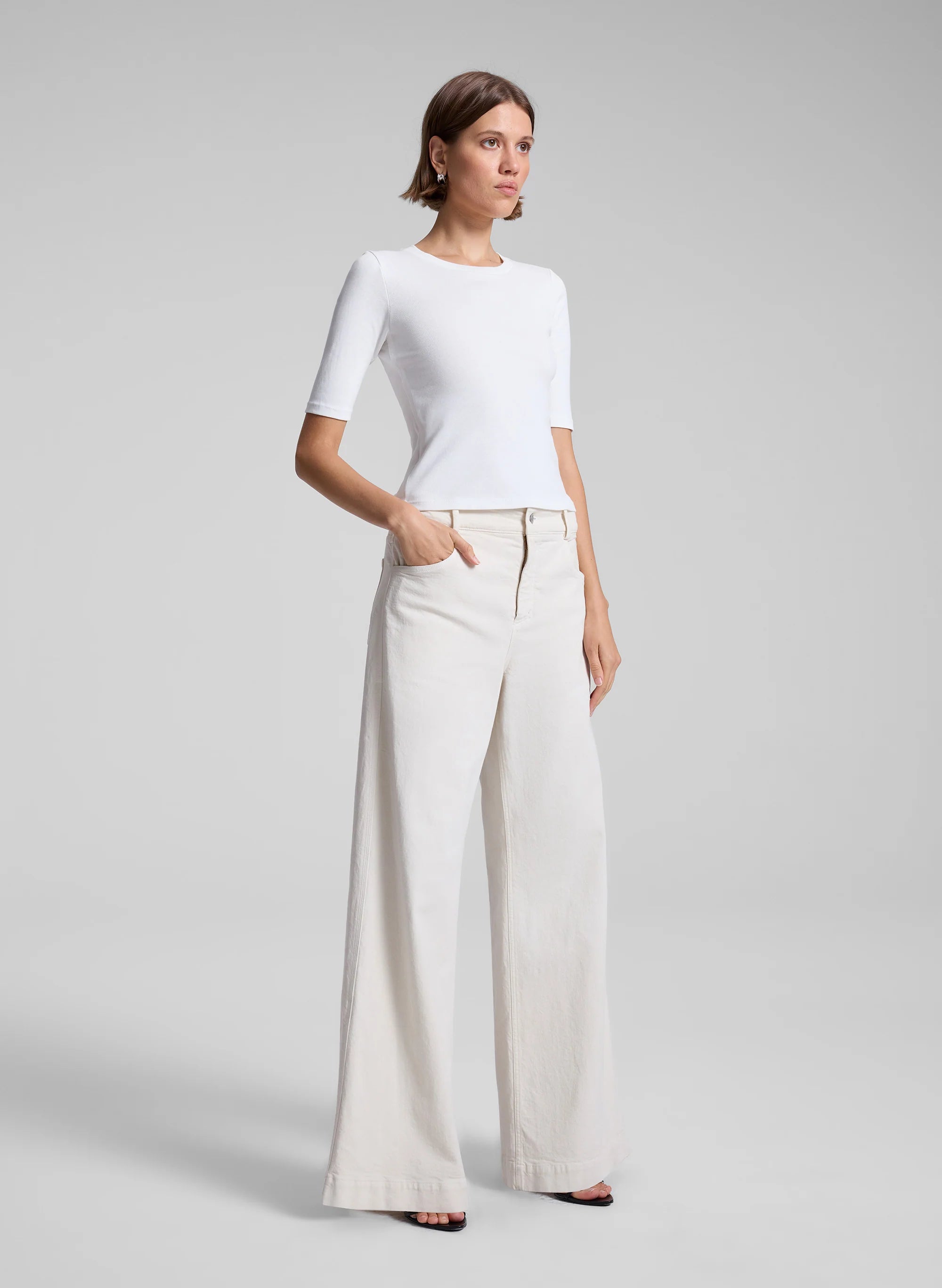 The Rory Tee is crafted from soft ribbed fabric in crisp white. This minimalist silhouette features a clean crew neckline. elbow-length sleeves. and a close-to-body. Its '90s influence brings a sense of understated versatility. making it the ultimate base for any look. Shop Tops.