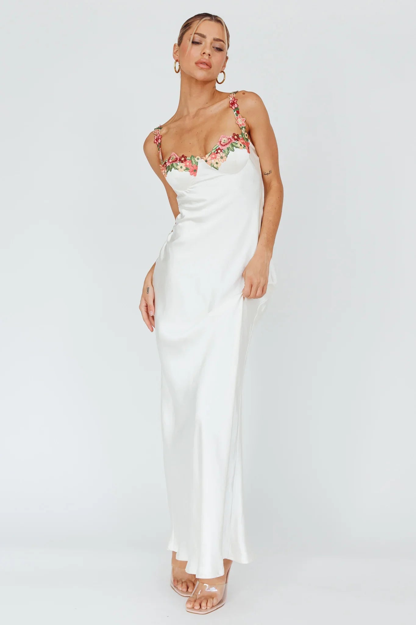 Heads will turn when you walk by in our gorgeous Rose Garden midi dress. We are in love with its pretty floral applique trim! Perfect for bridal events or a birthday celebration. Team it with mules and a clutch for a romantic look we are loving.
