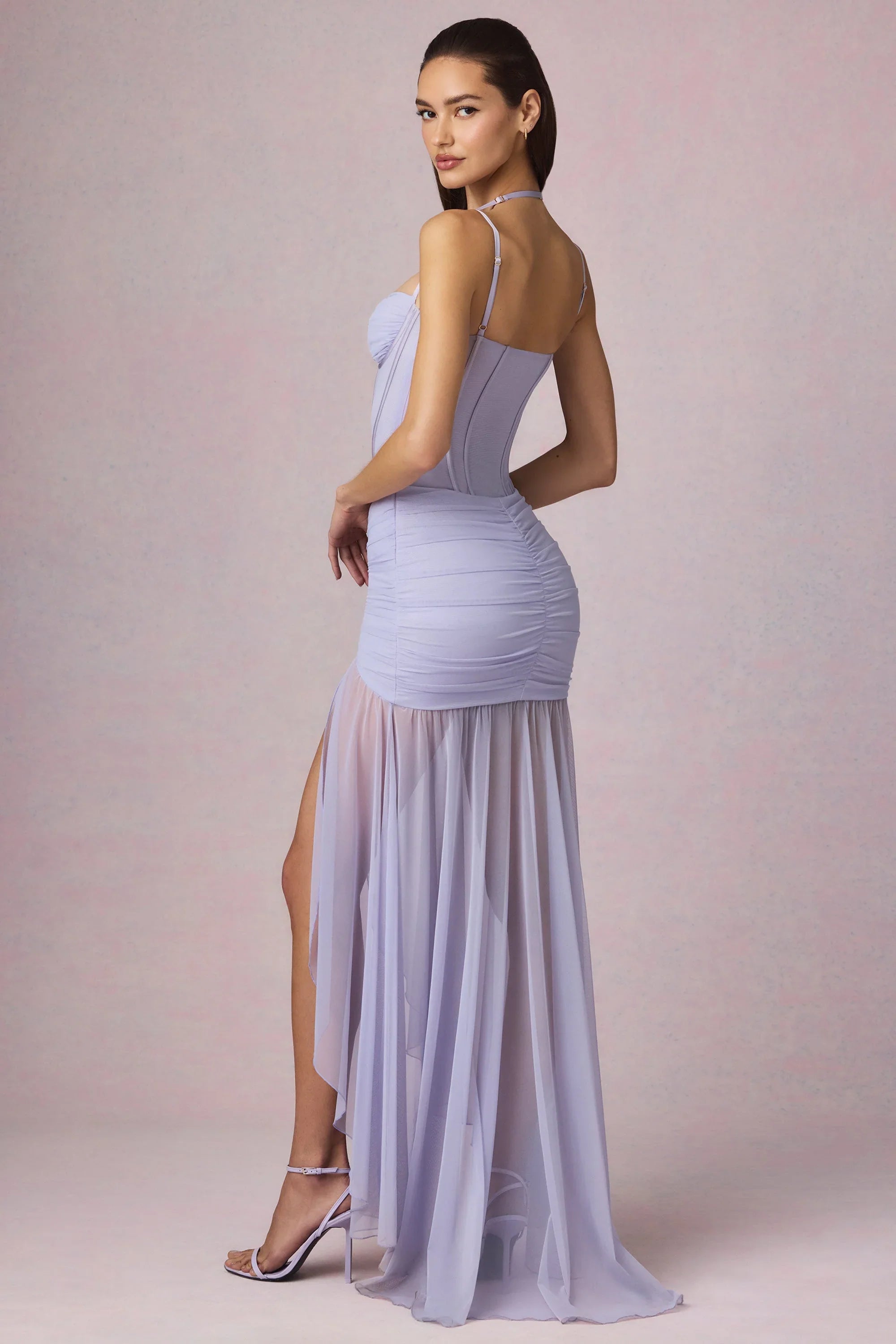 Divine elegance, exquisite craftsmanship. The Haruna gown is crafted from our premium, dual-layered floral mesh fabric thats designed to skim and highlight your curves. It features a corset-inspired bodice with boned detailing, wired cups for enhanced support, and adjustable shoulder straps for a custom fit every time. Its enhanced with ruched detailing at the waist and a partially lined handkerchief skirt with a small puddle train for a statement finish.