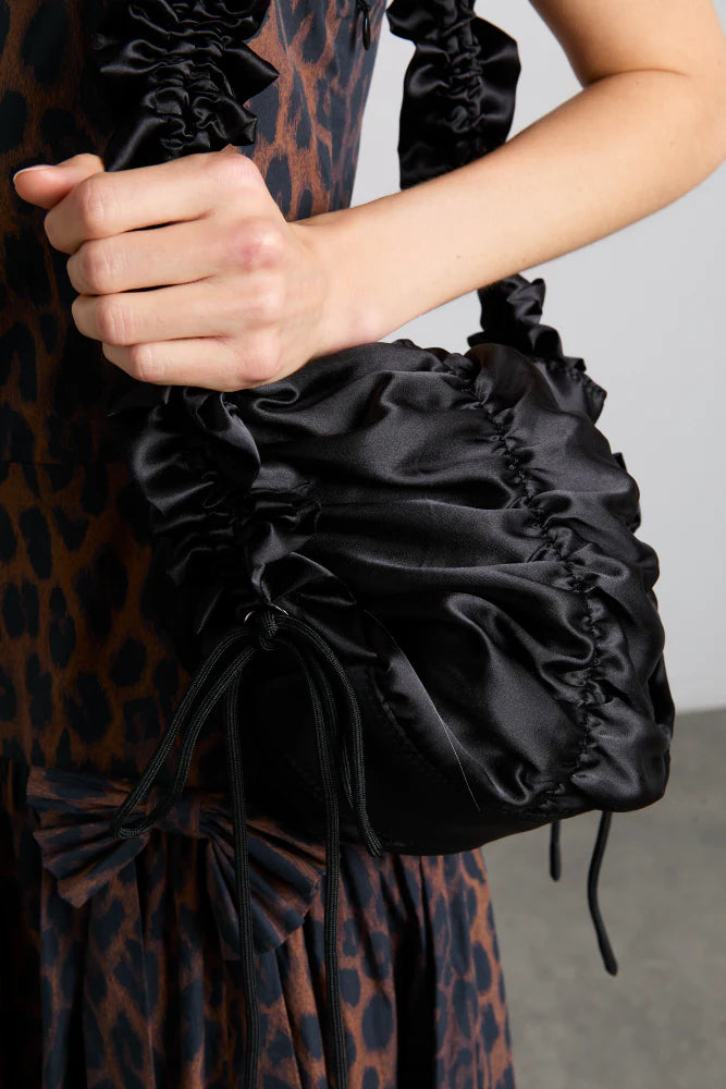 Practicality meets statement style with our ruched satin bag - made from recycled materials.