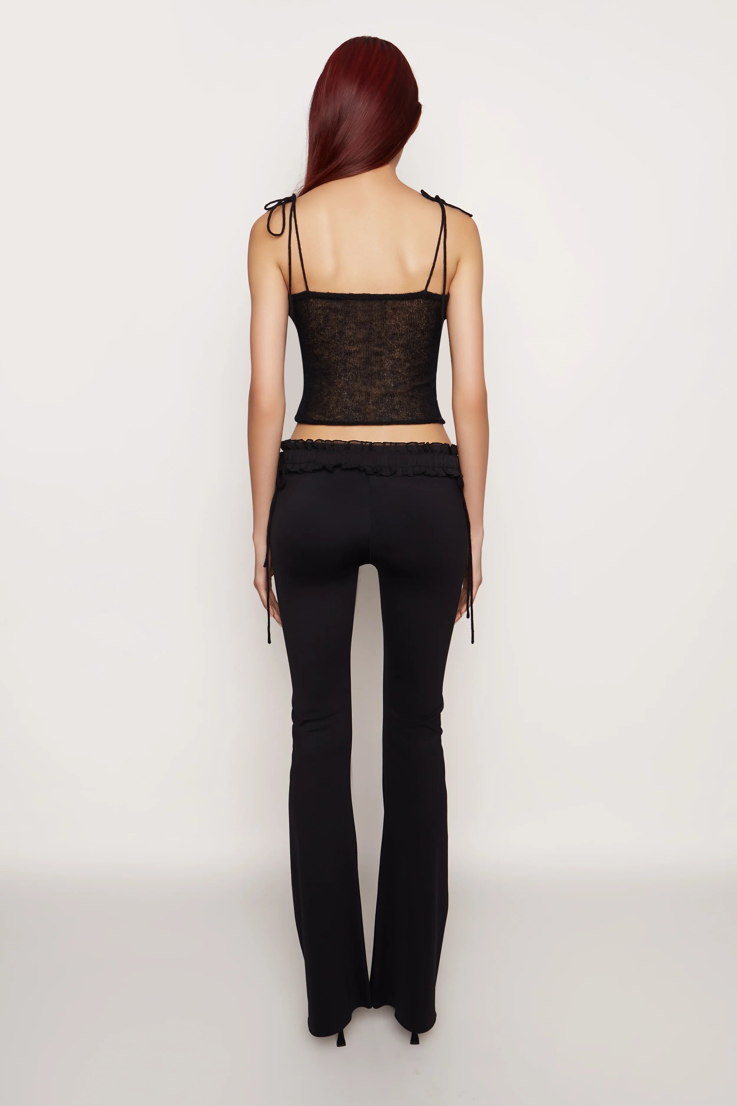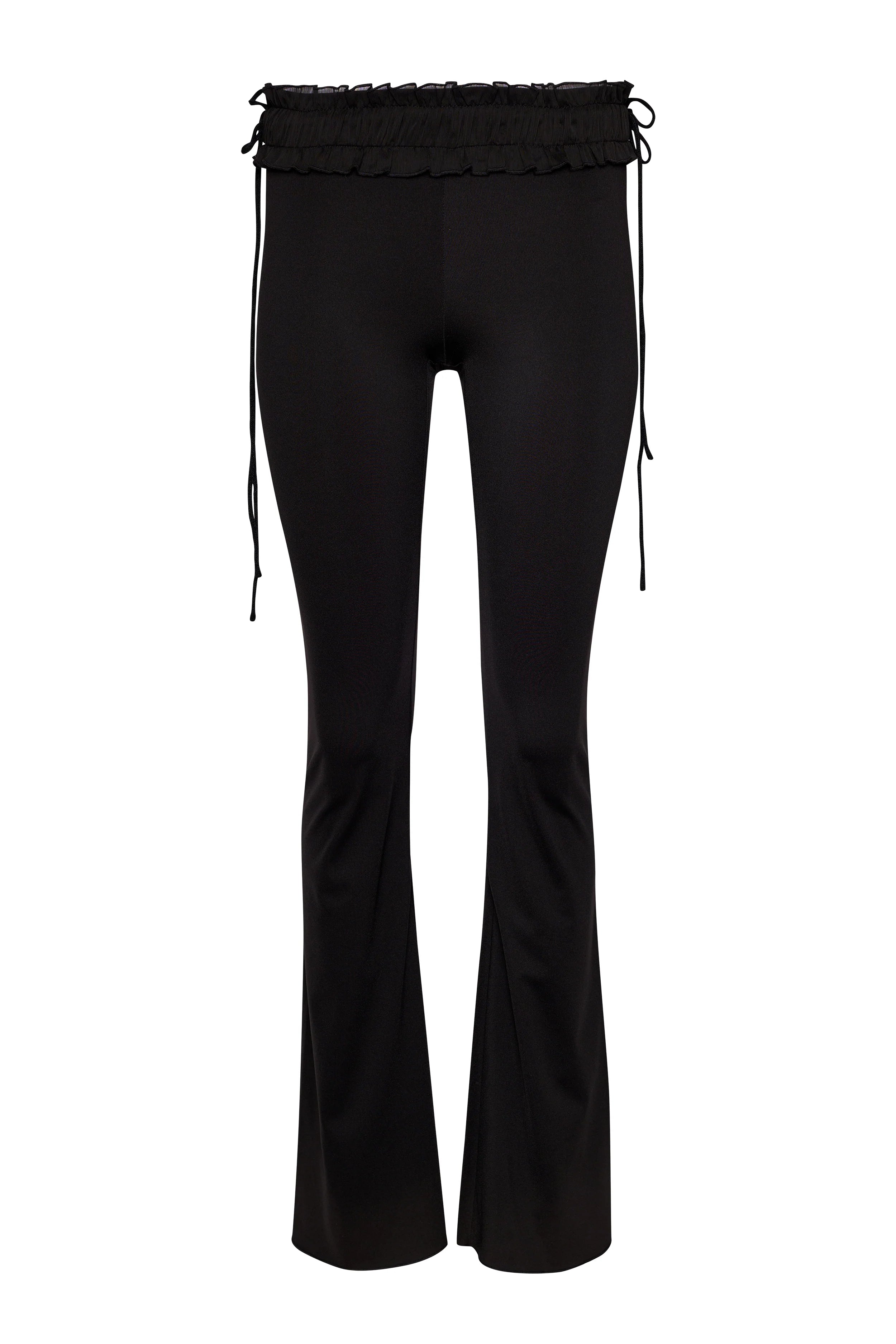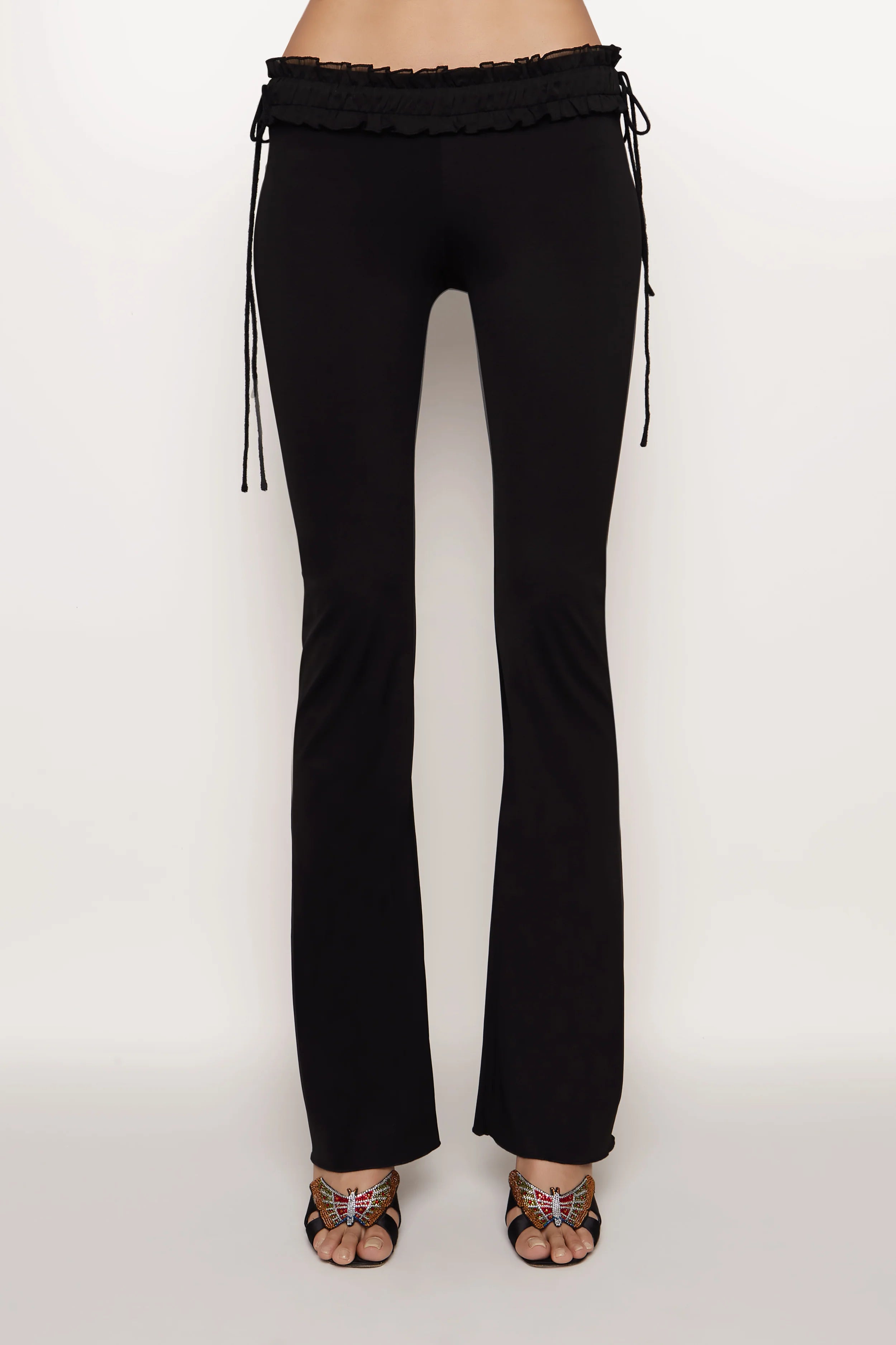 We made the perfect pants: lightweight stretch athletic-style jersey that's super soft and comfortable in a cutie low-rise silhouette with a ruffled chiffon waist. They're pretty great worn with anything. but we especially love them with the Ruched Chiffon Knit Tank.