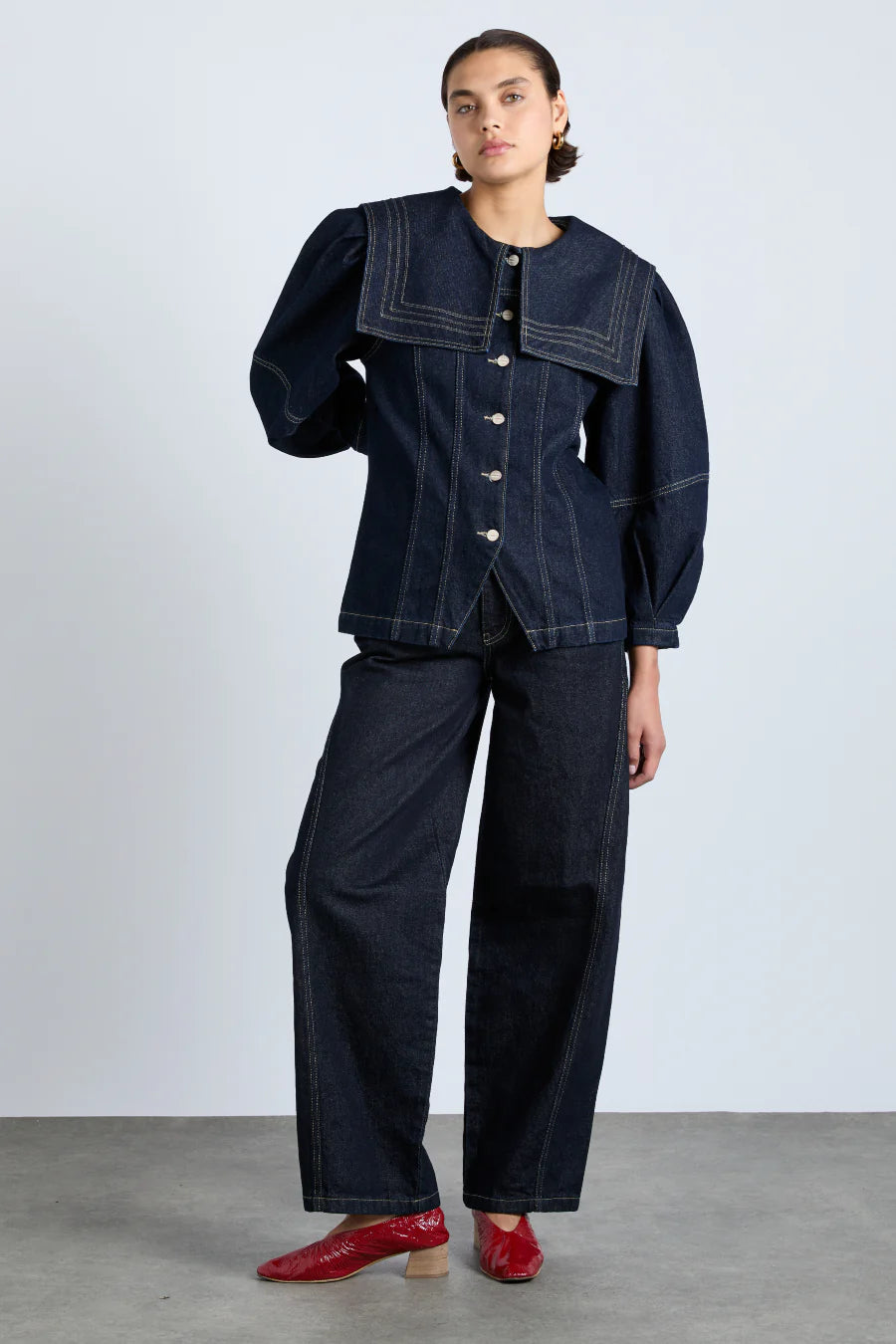 Our Sailor jacket in dark indigo is a chic example of tailored denim. to be styled up or down in line with the occasion.
