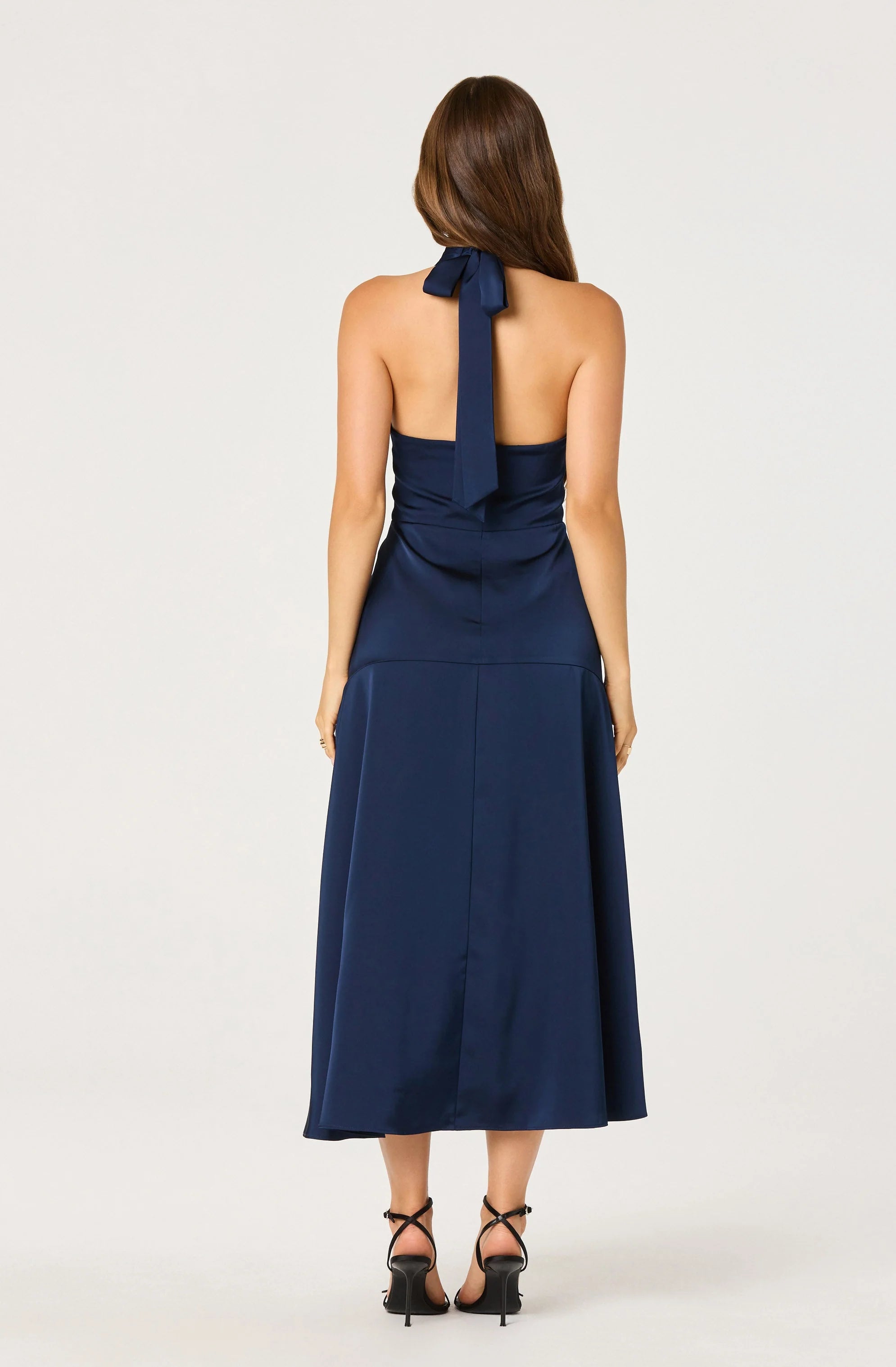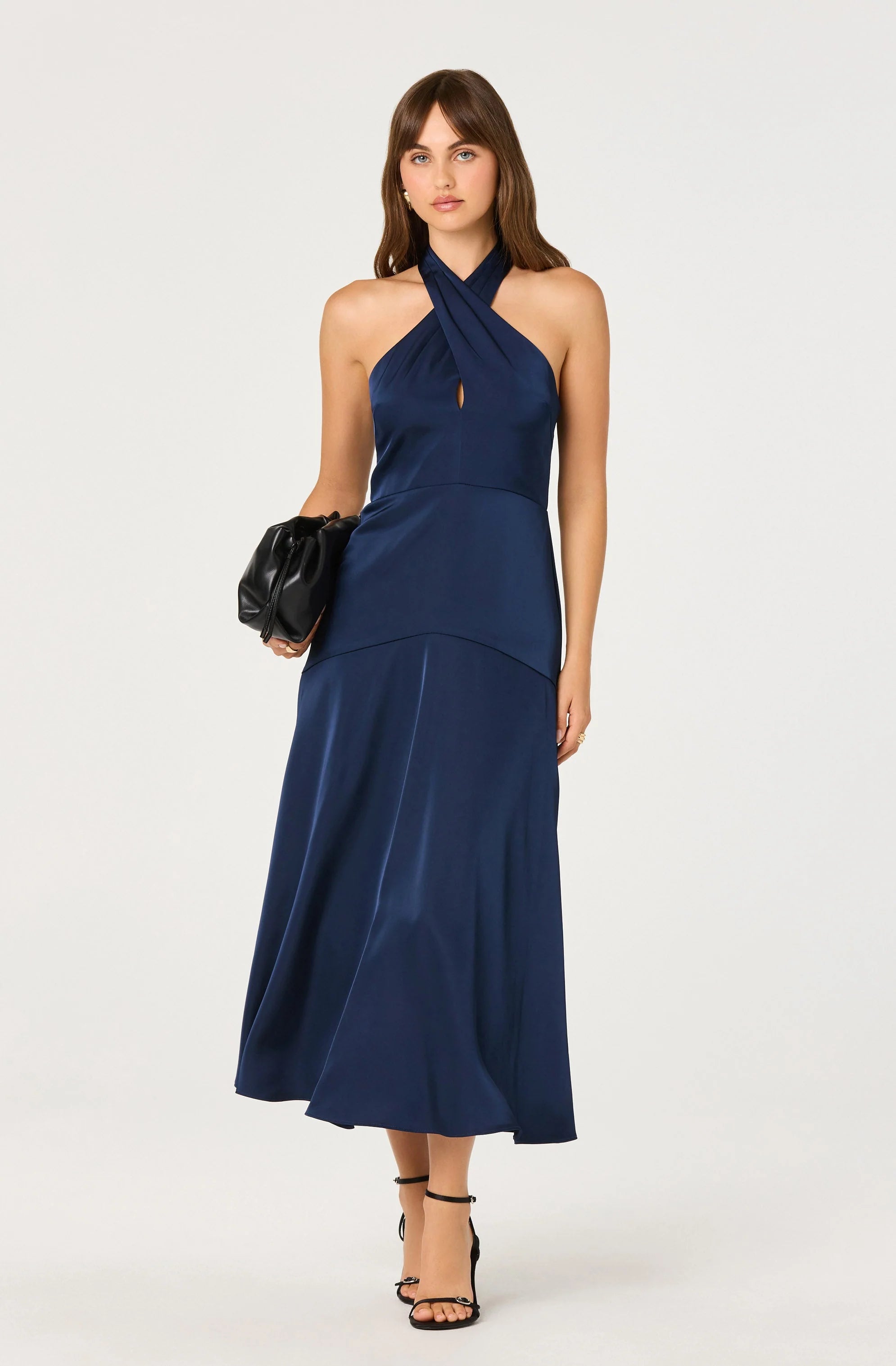 The soft crisscross design of this midi dress gently frames the shoulders, while the delicate keyhole cutout adds a whisper of allure. This is the perfect dress for weddings, candlelight dinners or elegant evenings out.