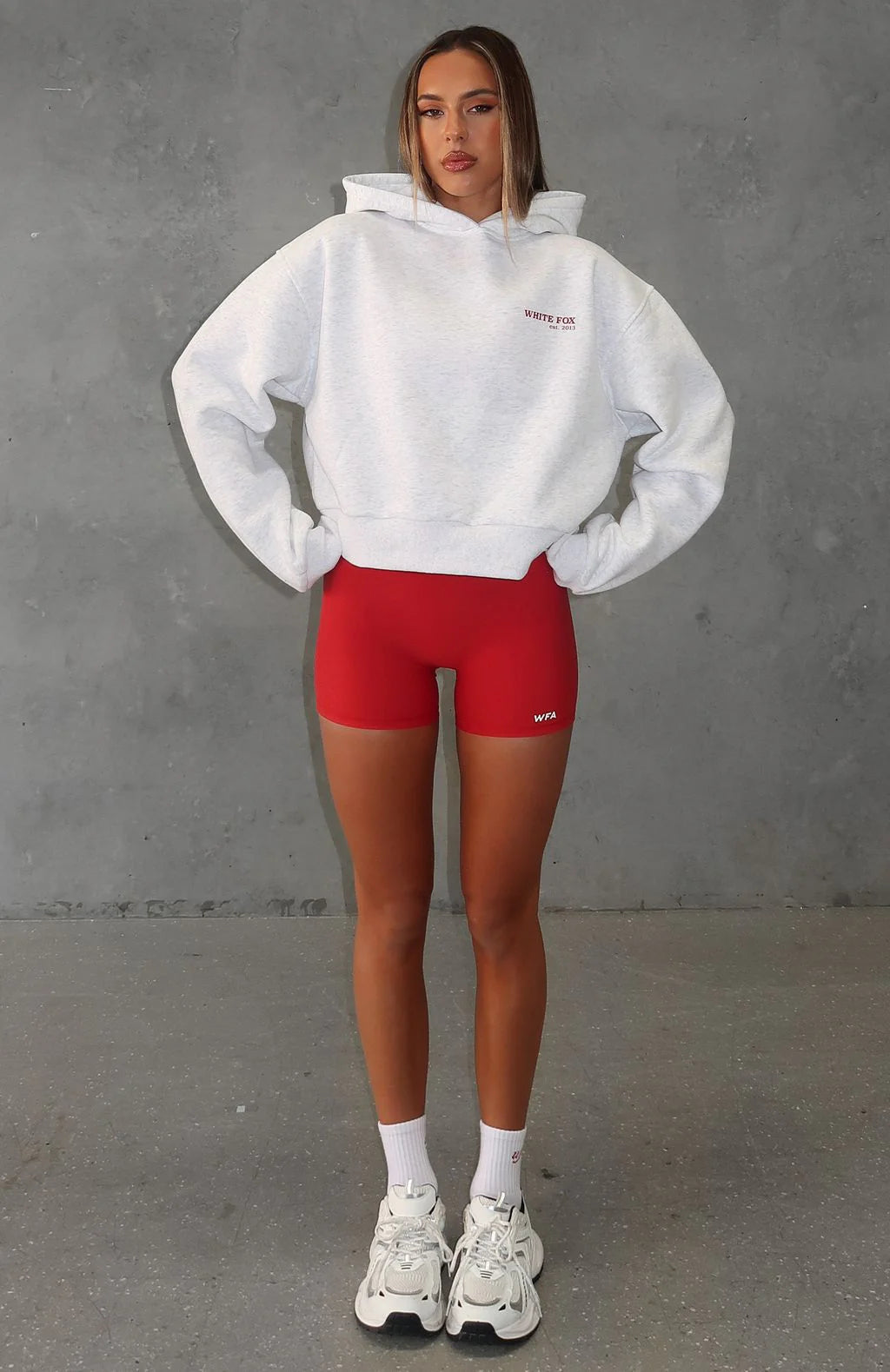 Feeling like sporty spice? The Serving Up Cropped Hoodie Grey Marle features an oversized fit with drop shoulders, hooded design, ribbed cuffs and hem, cropped fit and print logo detailing side front and back. Pair with lounge shorts and sneakers for a cute weekend casual vibe.