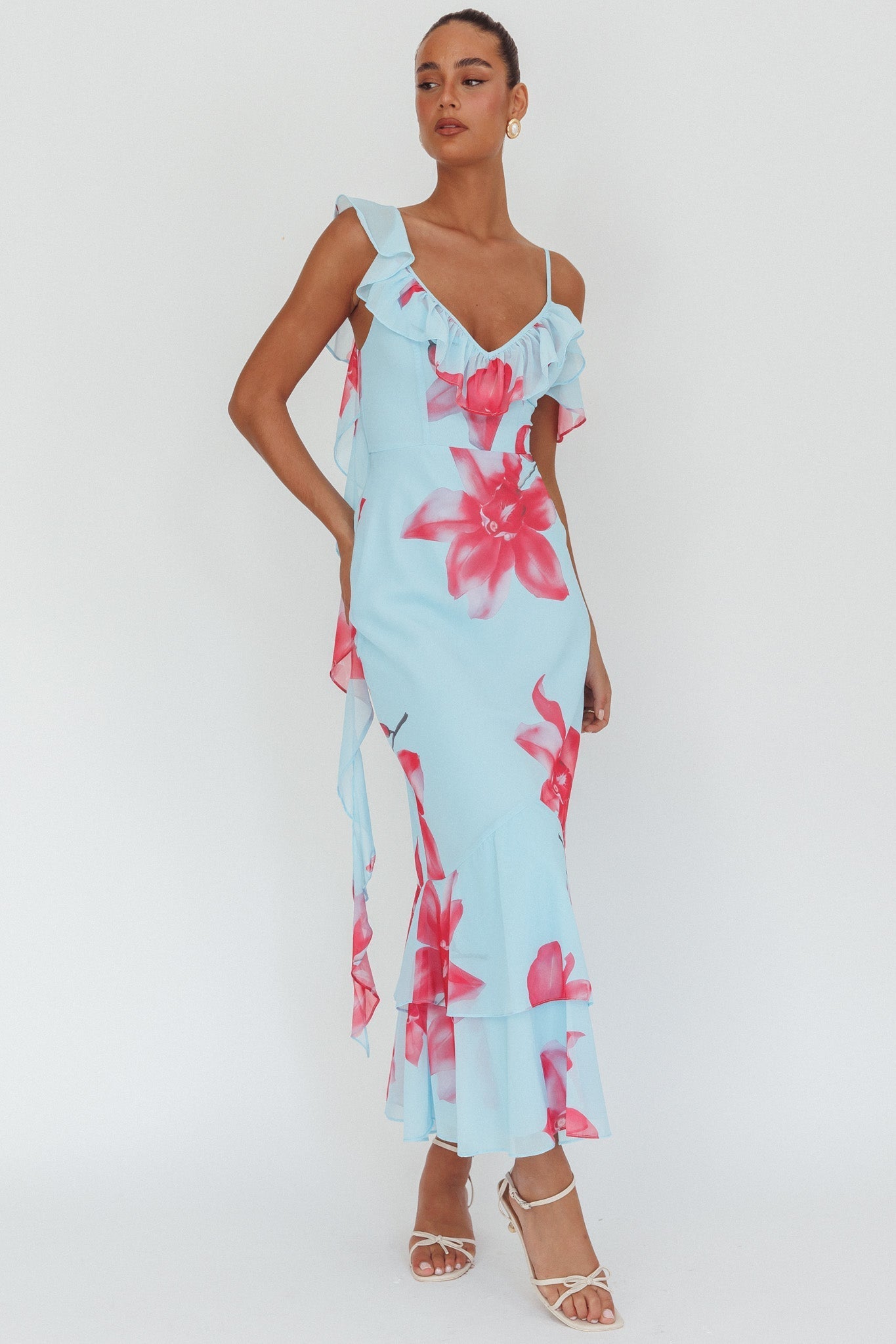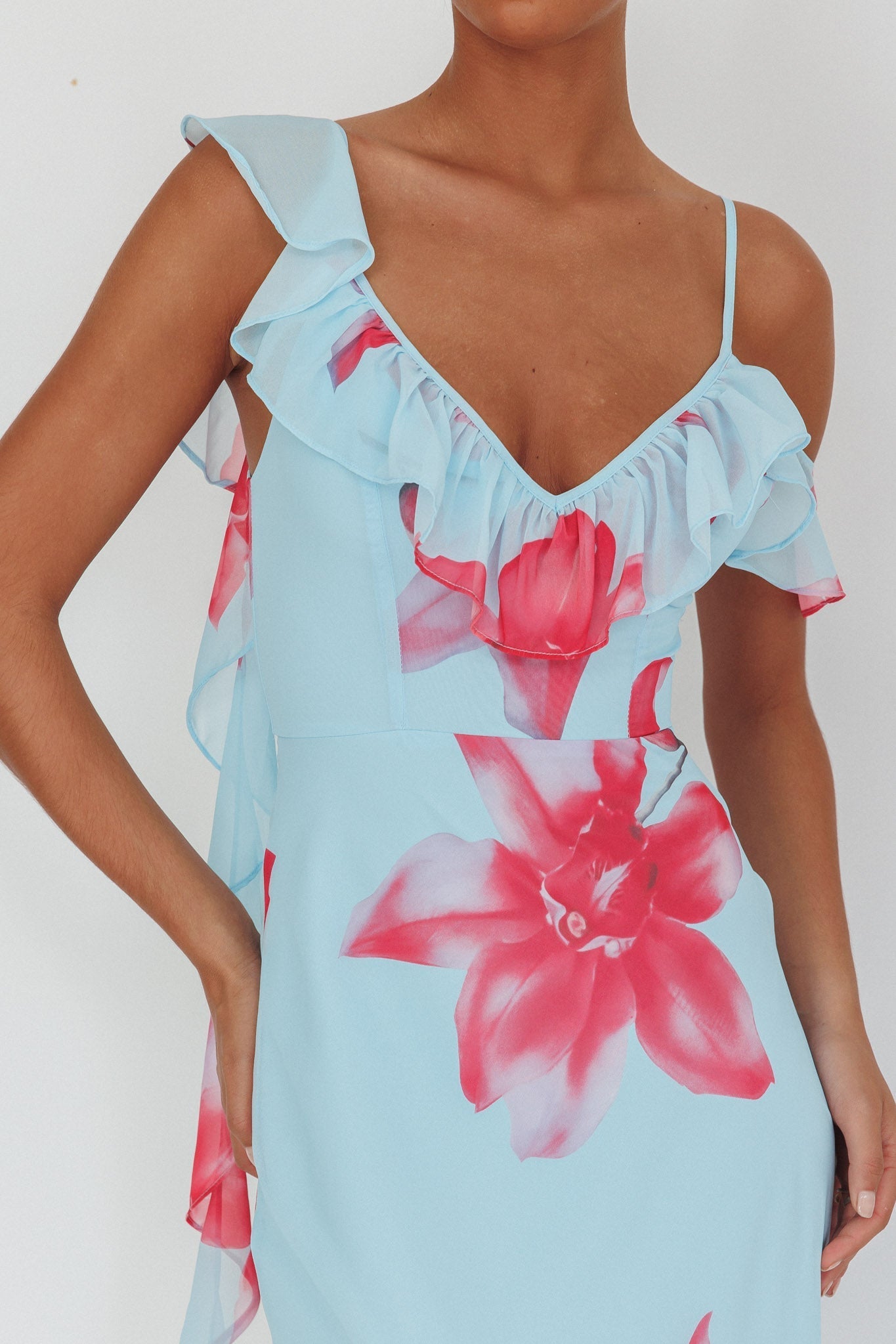 You'll feel like a princess in our gorgeous Sun Lover maxi dress. We are in love with its feminine, ruffle trim and asymmetric straps. Perfect for a wedding or a special occasion! Team it with strappy, tie-up heels and a clutch for a look that's fit for royalty.