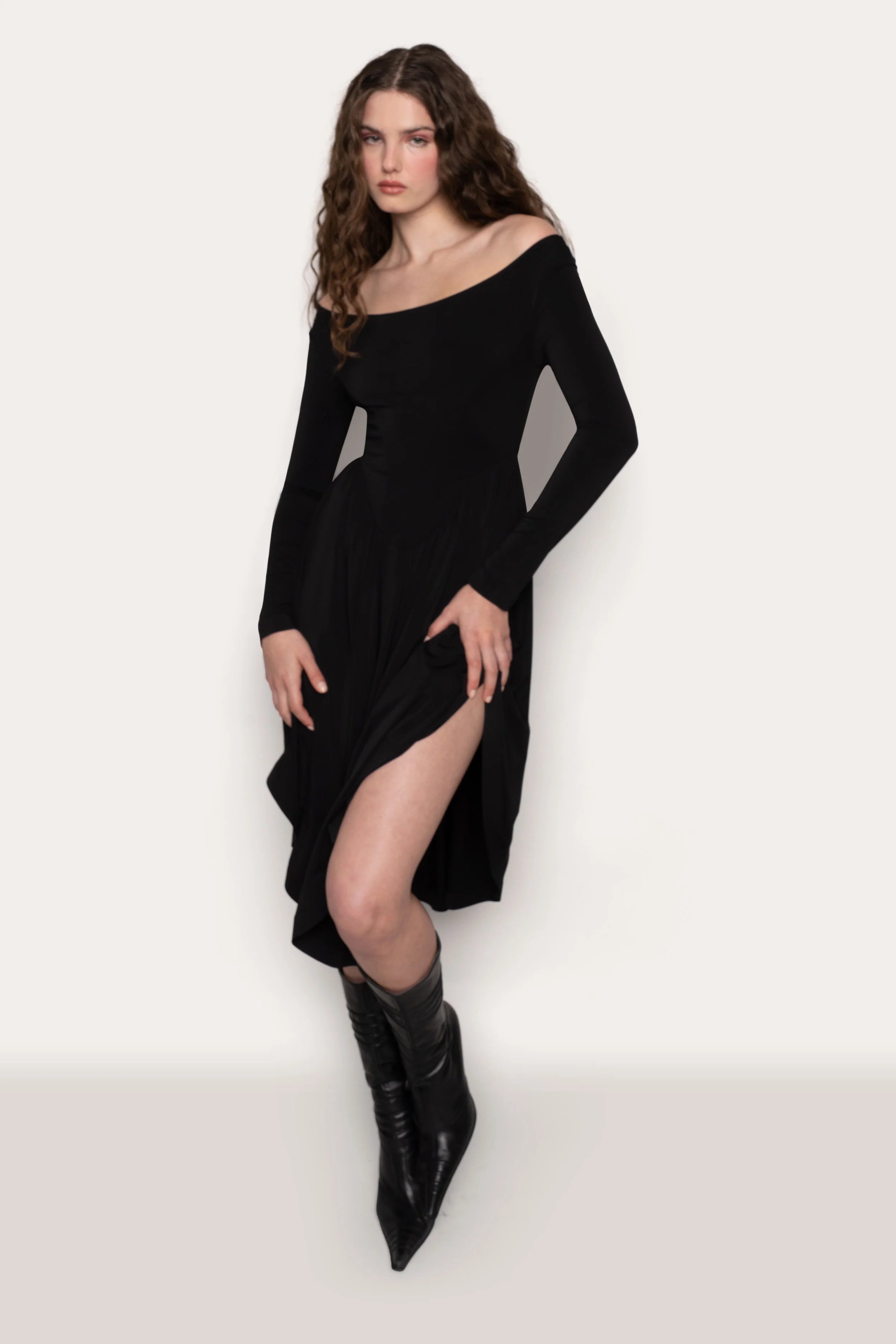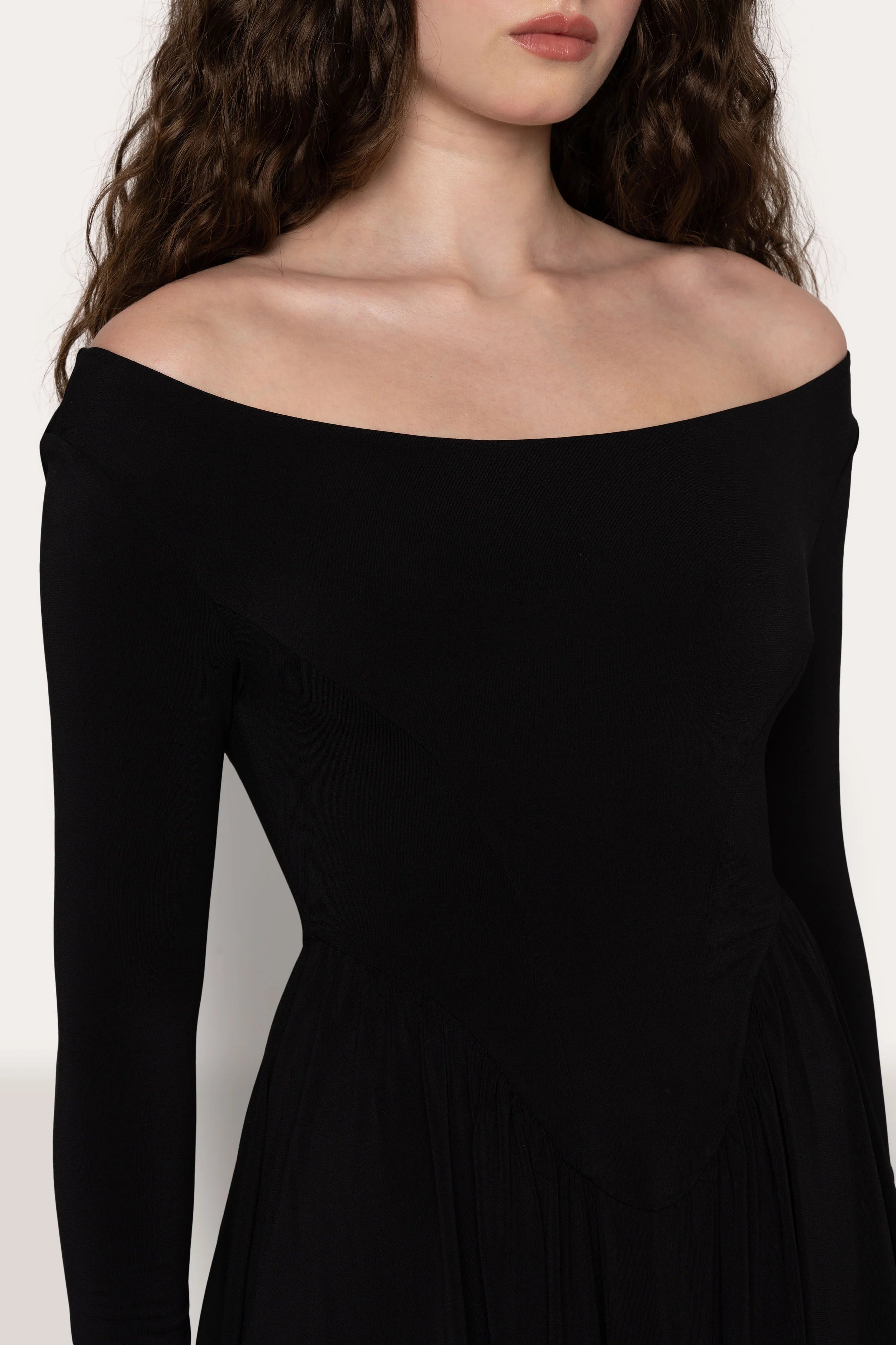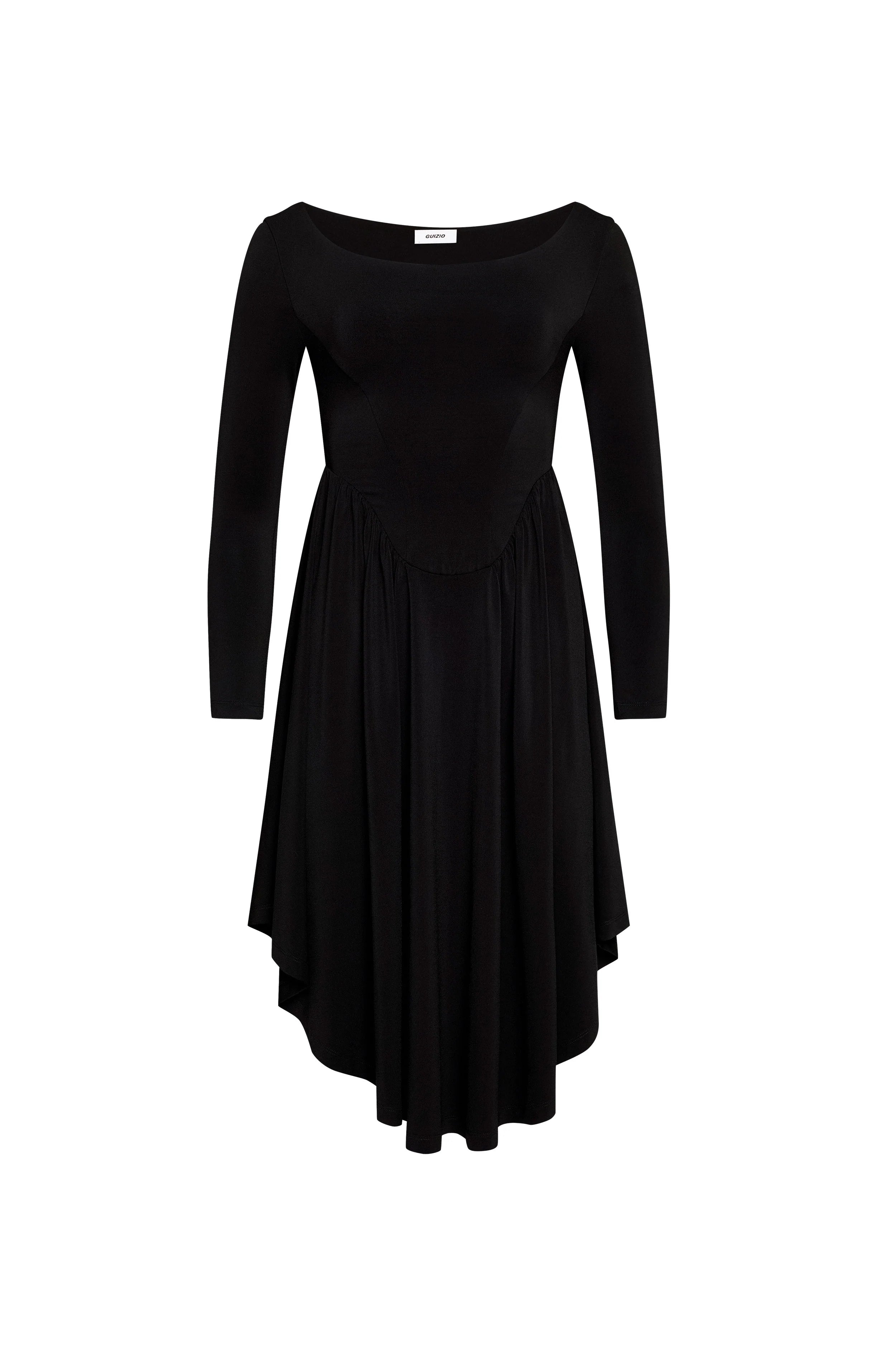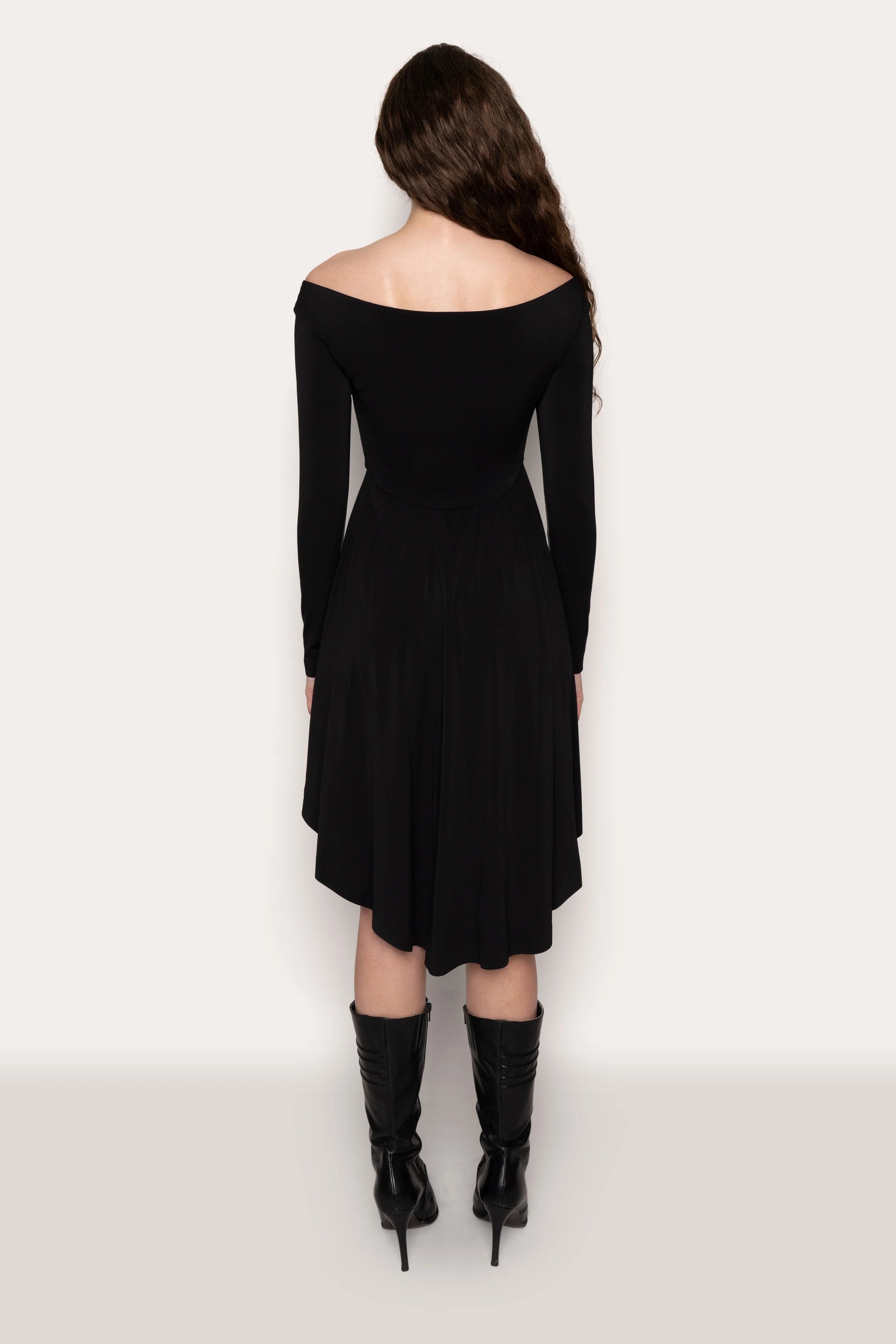If you've ever imagined yourself as a star ice skater. you'll love this dress. Inspired by vintage silhouettes. it's cut from stretch jersey to a fitted bodice with a wide bateau neckline. giving way to a full. gathered skirt. Asymmetric shaping flatters; easy to wear. this dress looks as great with ballet flats as it does with heels for a night out.