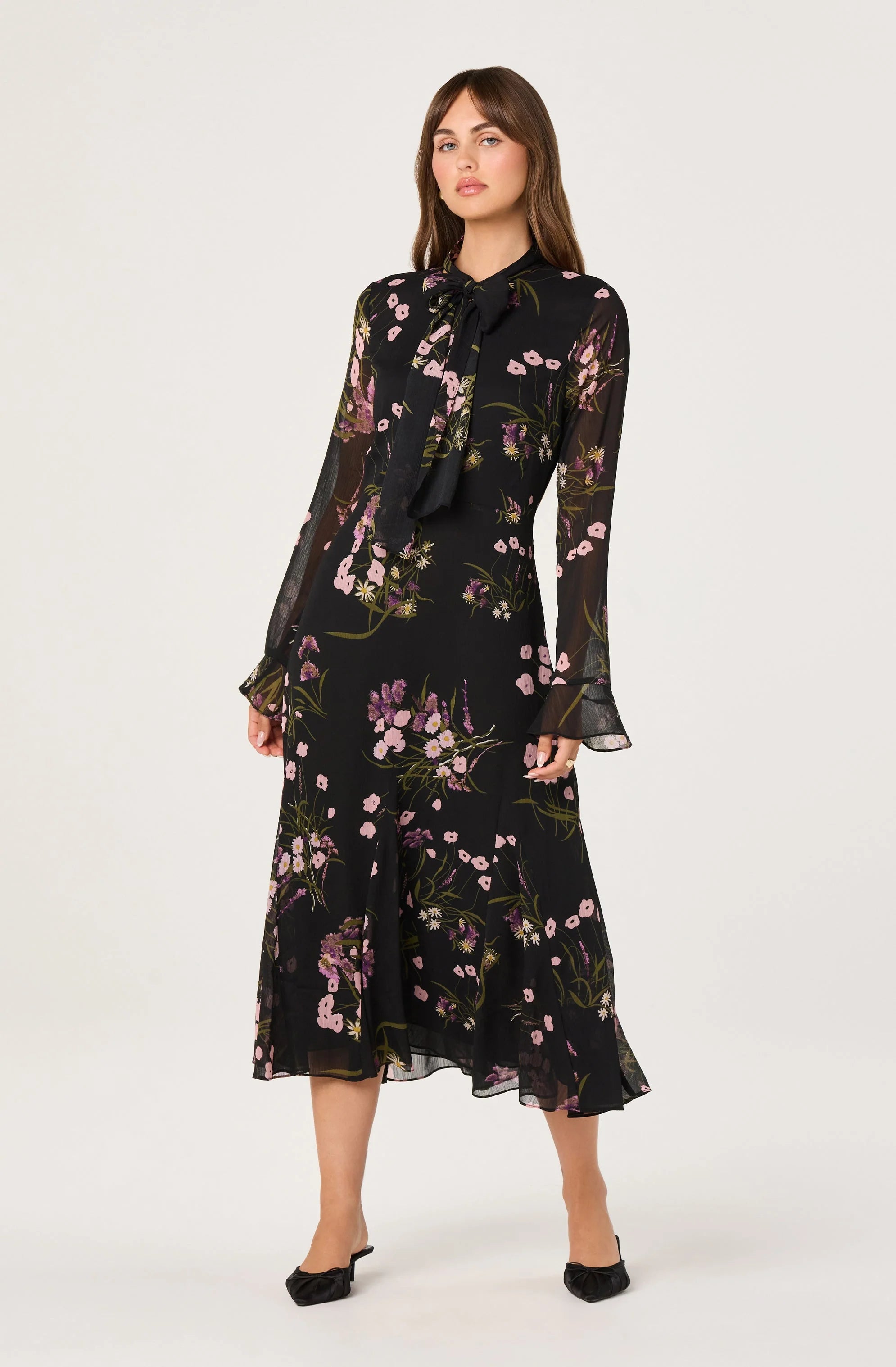 This floral ruffle midi dress is light and effortless—perfect for weekends, polished office days, or semi-formal occasions.