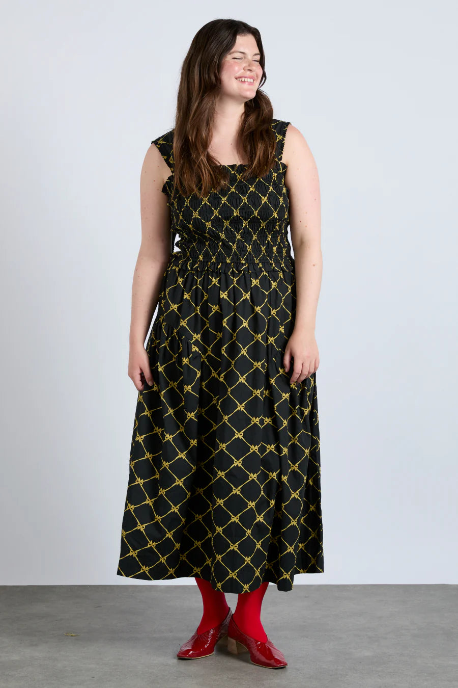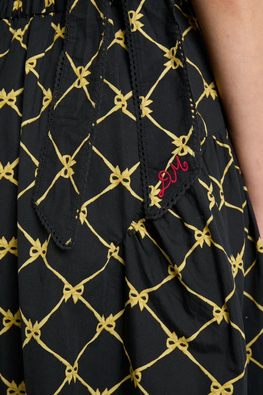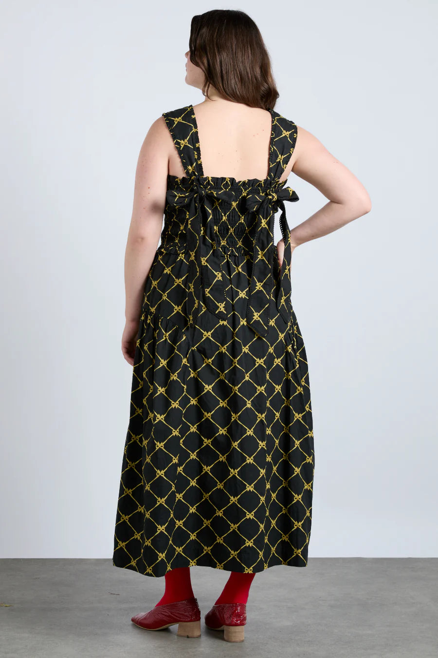 Our Tish midi dress features a timeless square neckline. delicate bow details and 100% organic cotton.