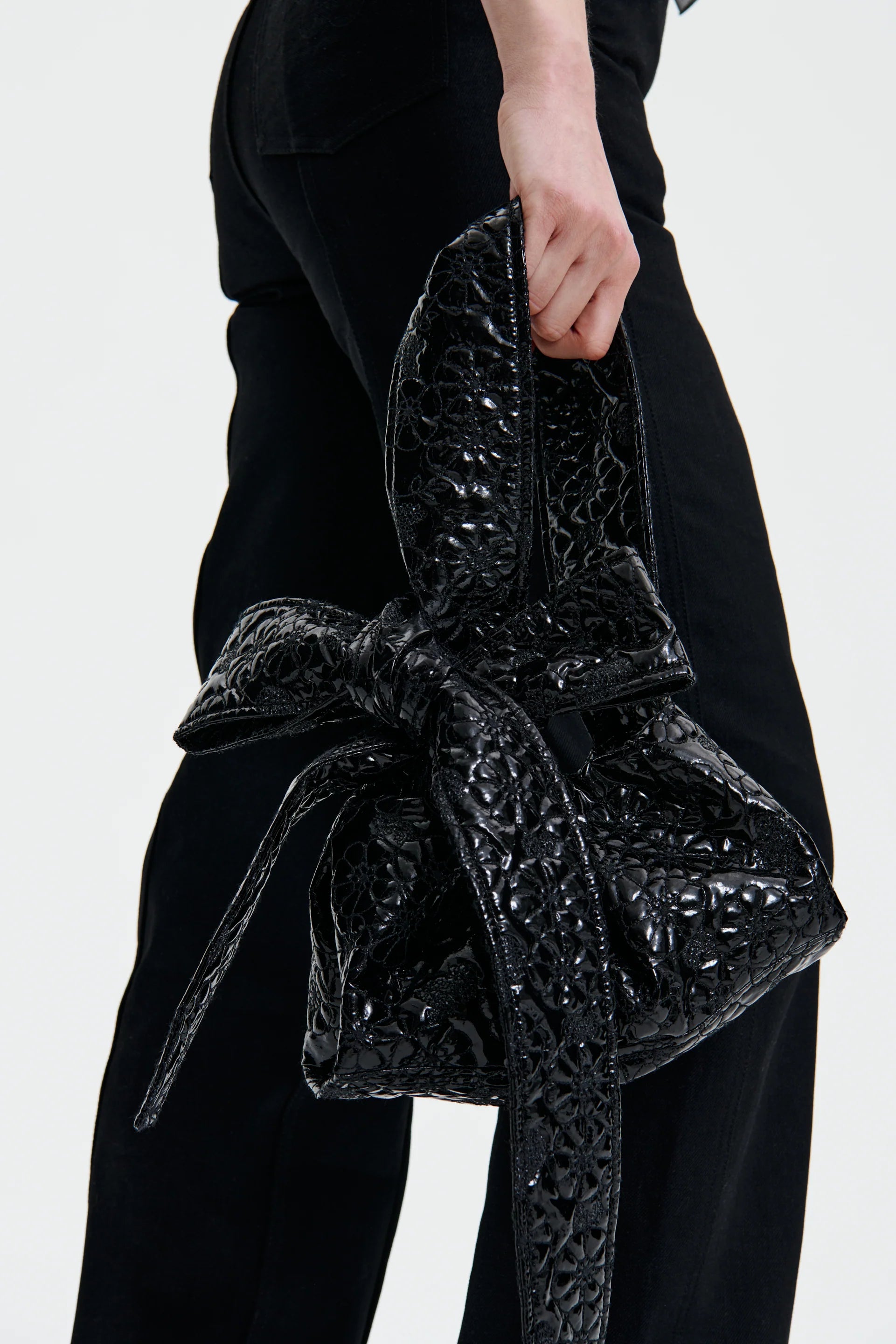 Channelling Scandinavian practicality. the Vesna bag in a laccata floral quilt. Botanical motifs find a new expression in a functional shoulder bag. complete with a dramatic bow tied with a laissez-faire attitude.