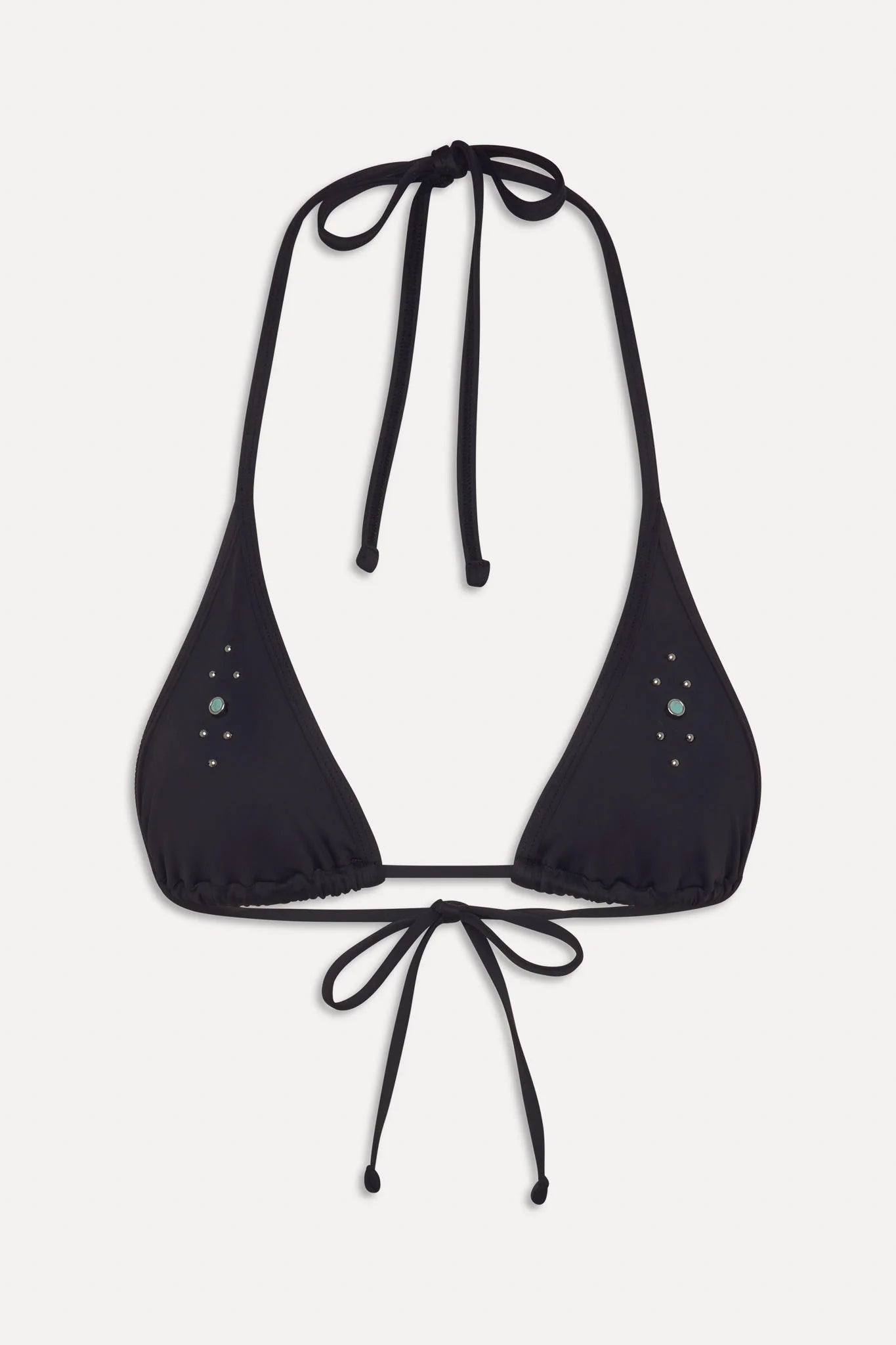 If you're looking for a special bikini top. you'll adore Paradise. This halter bikini top will be your newest Frankies favorite with its adjustable coverage. Exclusively from the Bella Hadid x Frankies Bikinis collaboration.