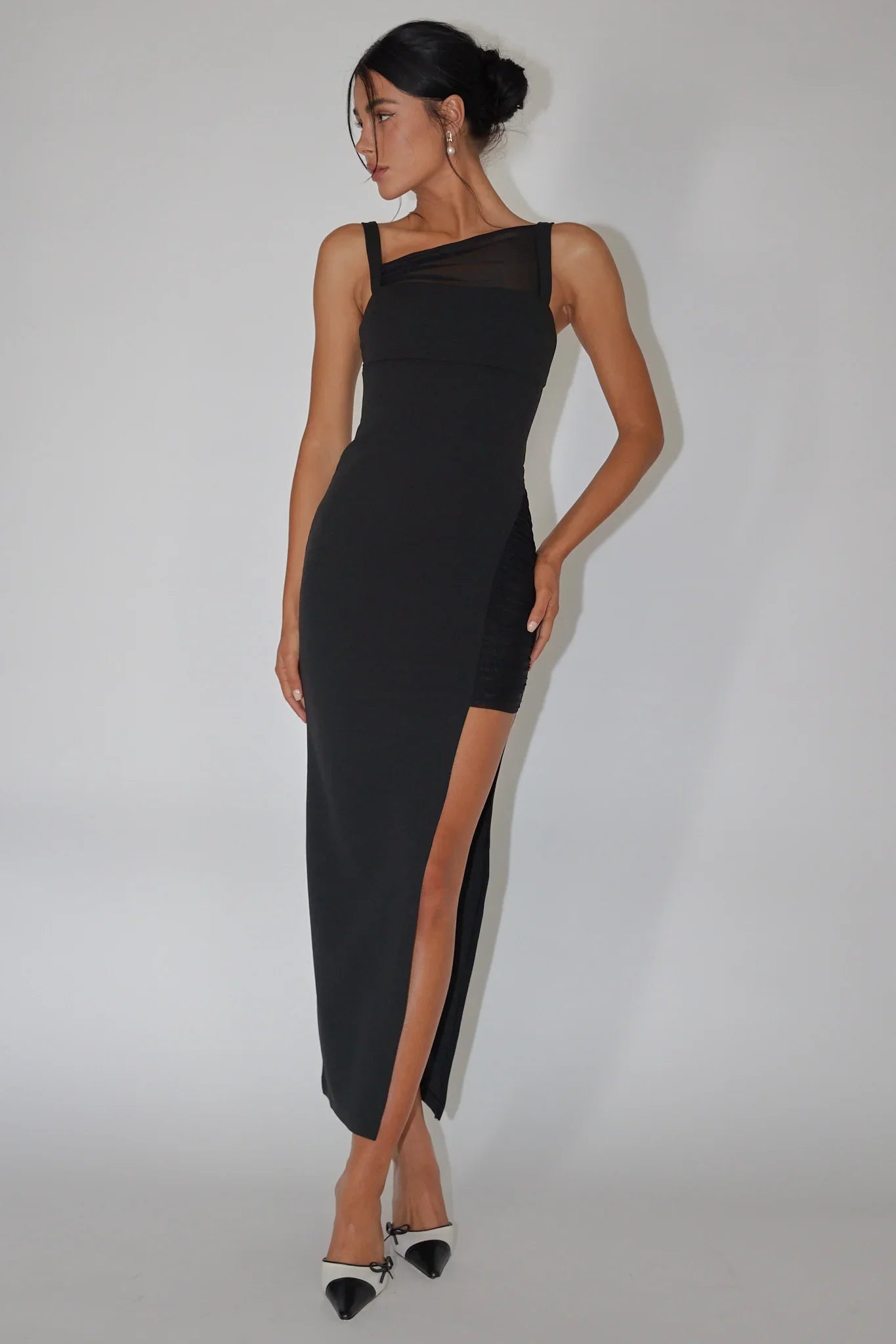 Make an entrance in our chic Zenya midi dress. Featuring ruching in the skirt and open, side split, it's perfect for a glam night out with your girls. Team it with black mules and a saddle bag for an on-trend look we are loving.