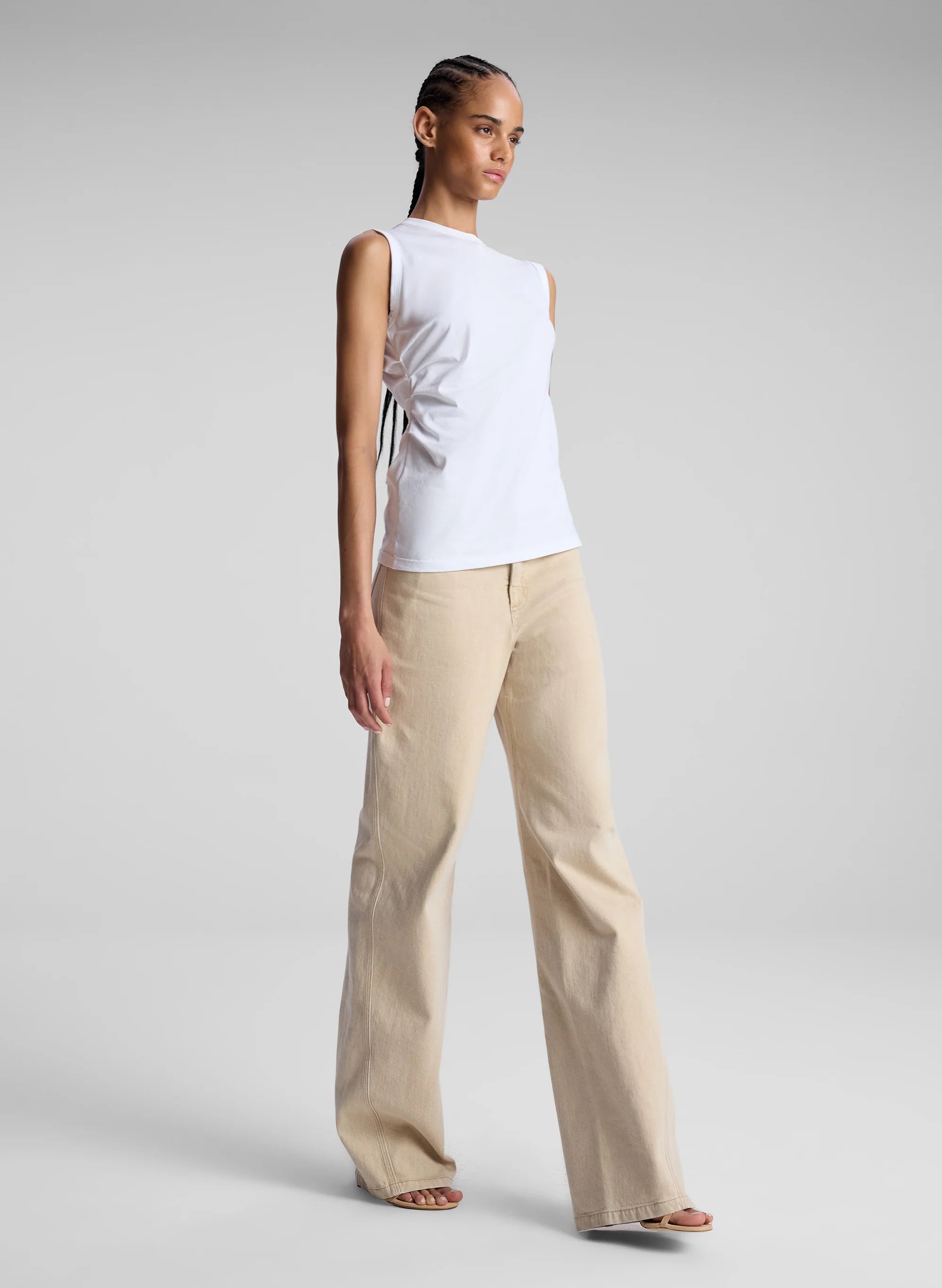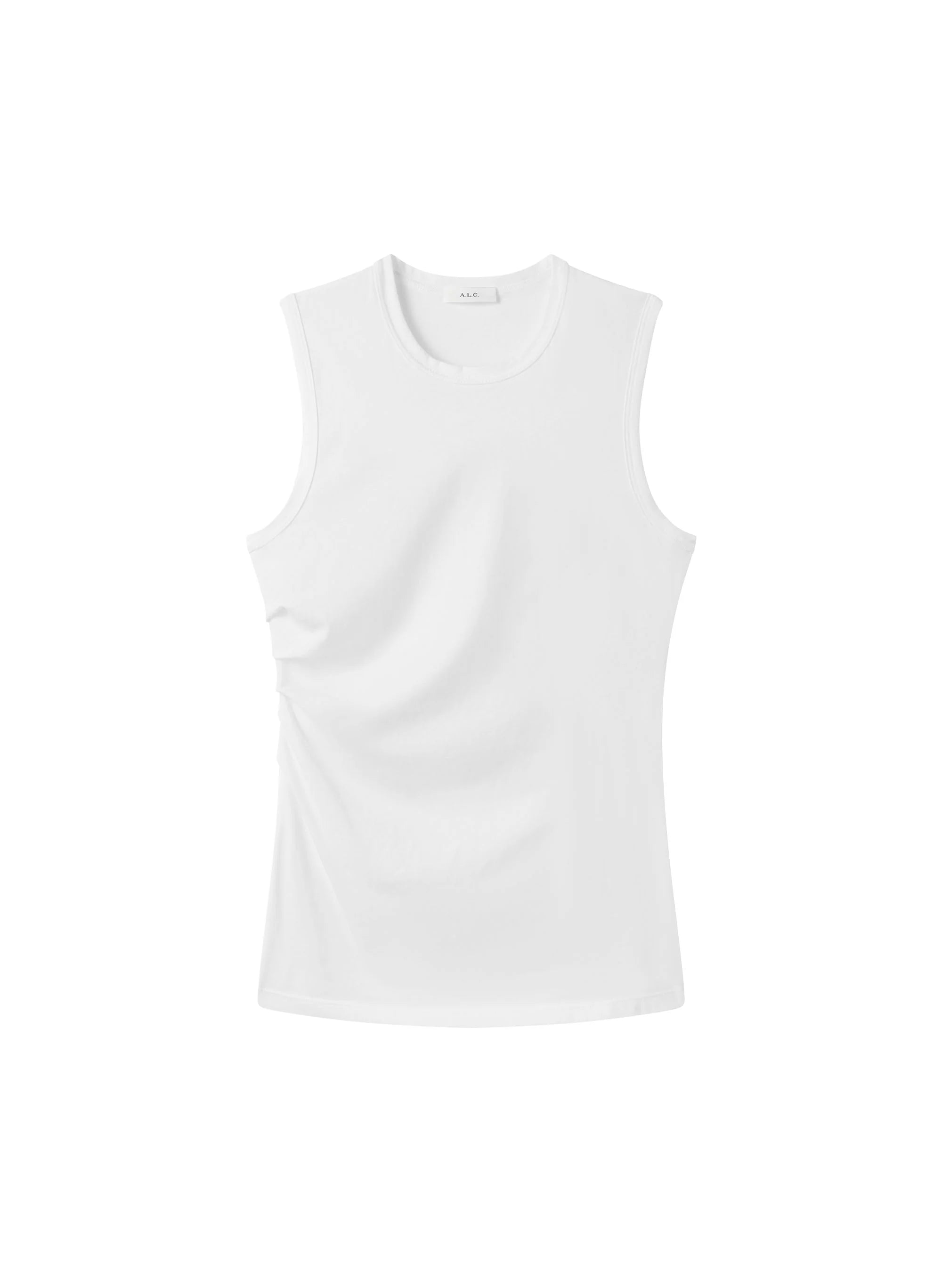 The Zoey Tank is crafted from our clean finish jersey fabric in classic white. This sleeveless silhouette features a high scoop neck and subtle ruching along the sides for an effortlessly gathered effect. This style runs true to size. Shop Tops.